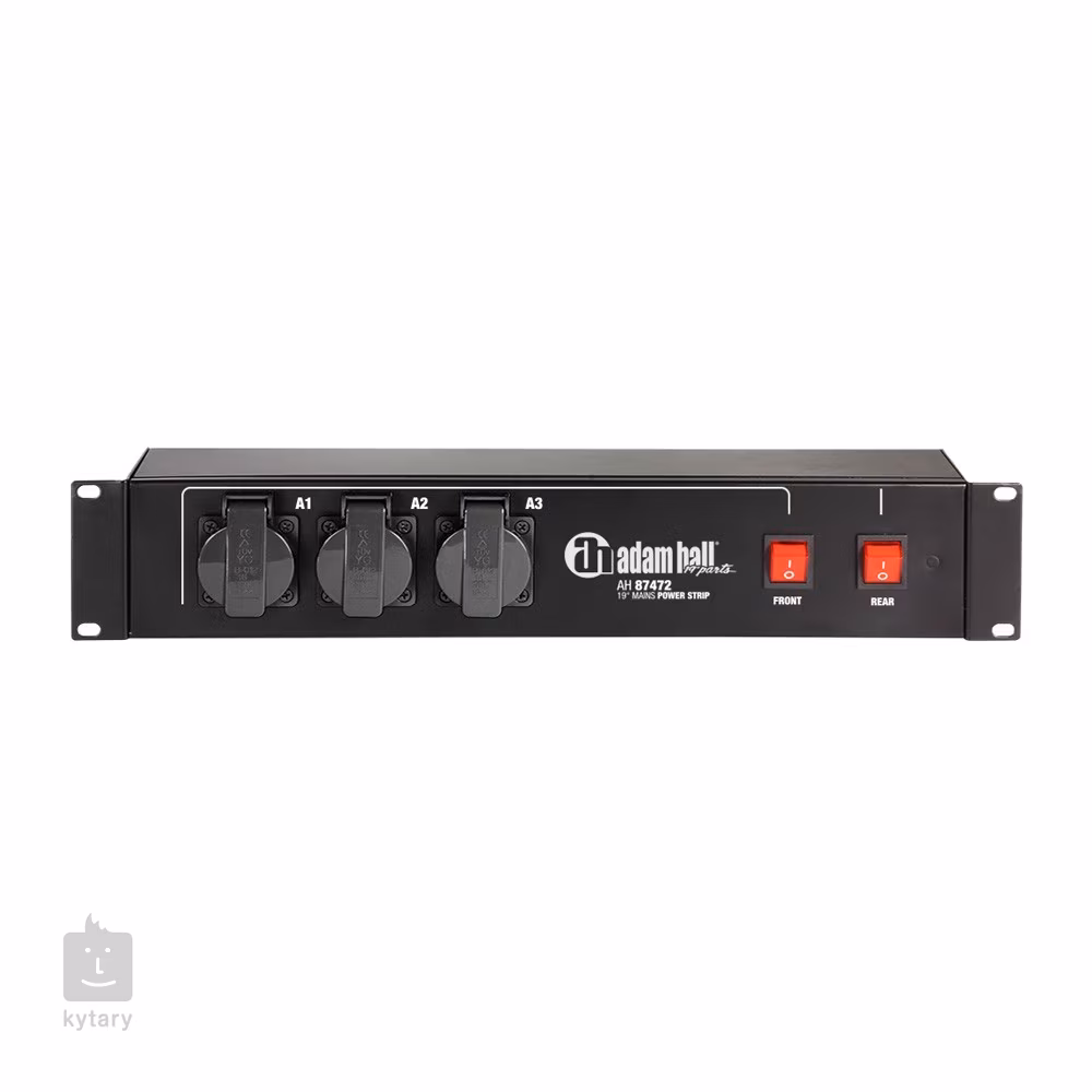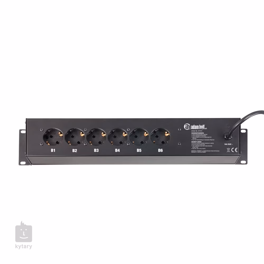 Steckdosenleiste für 19-Zoll-Racksysteme mit 9 Steckdosen (CEE 7/7). Die Leiste verfügt über einen Überspannungsschutz und zwei Schalter und eignet sich für Ihren Konzertkoffer, den Proberaum oder das Tonstudio.