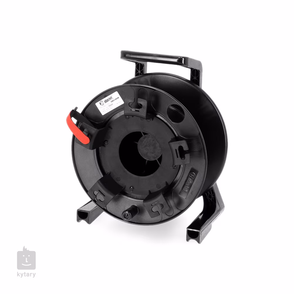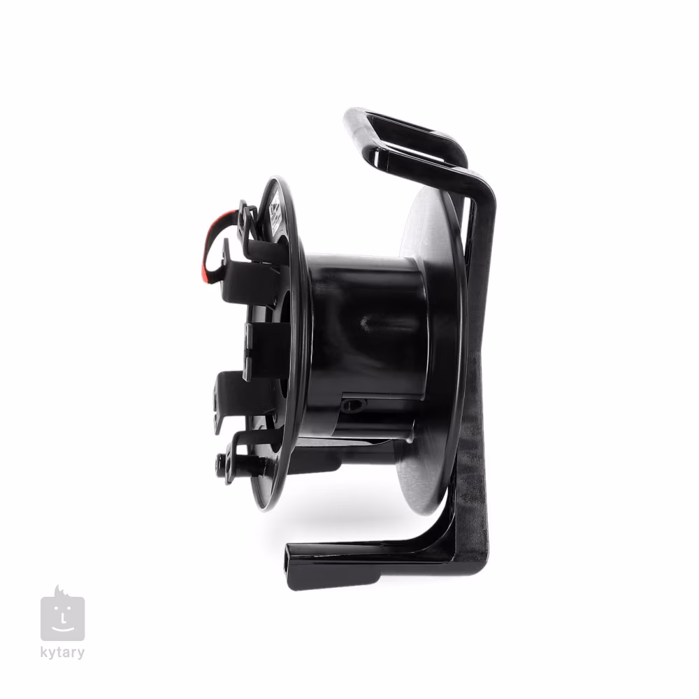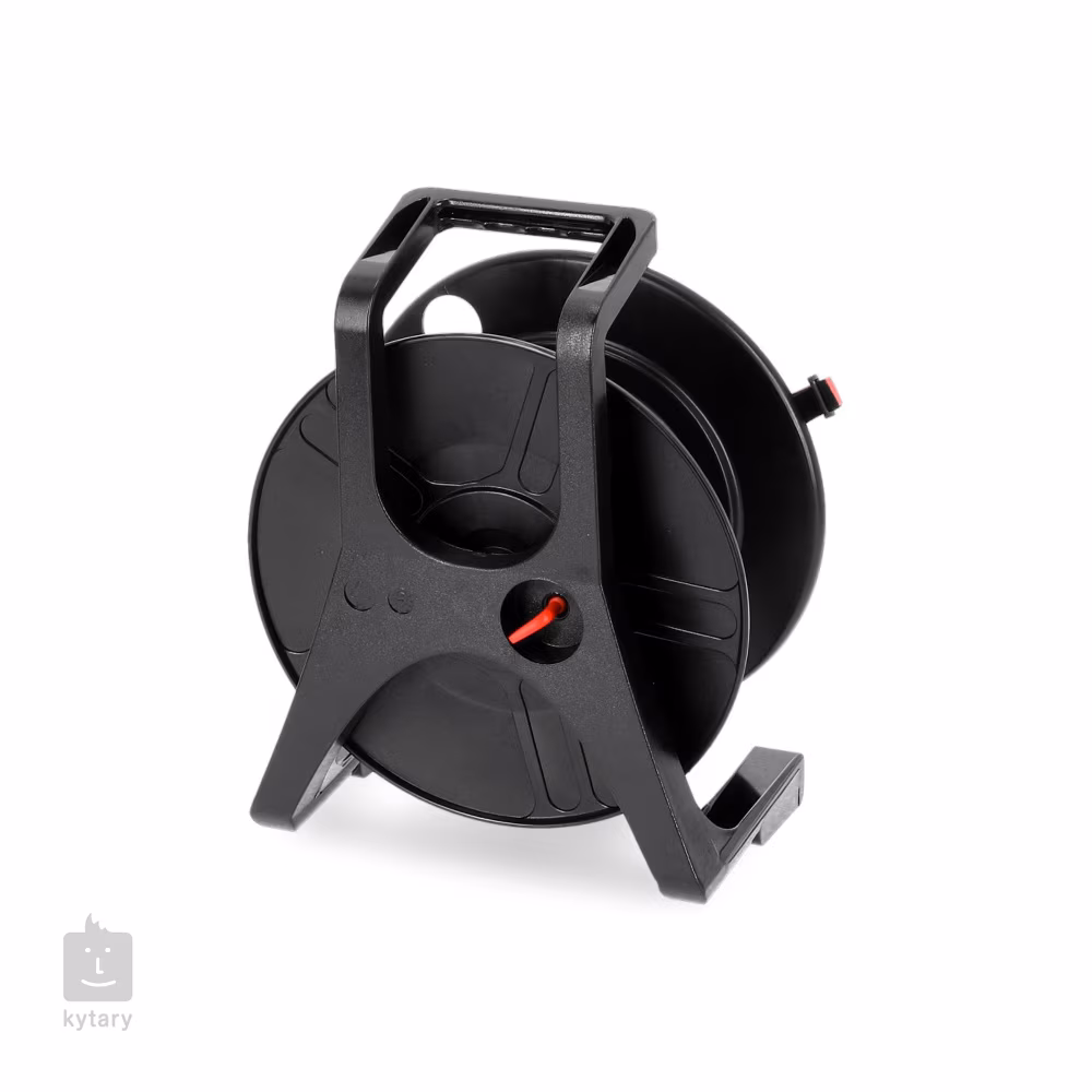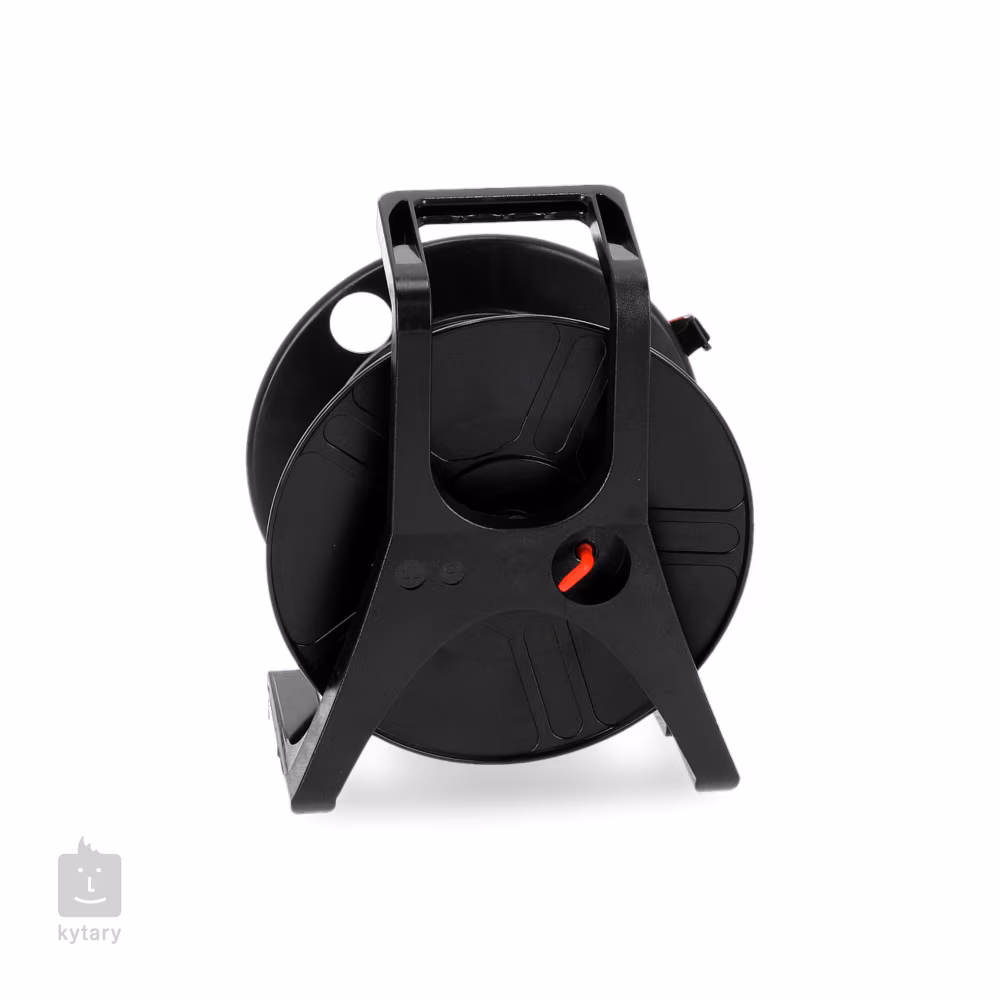 Kabeltrommel aus Spezialkunststoff mit ergonomisch geformtem Griff und abnehmbarer Kabelführung.