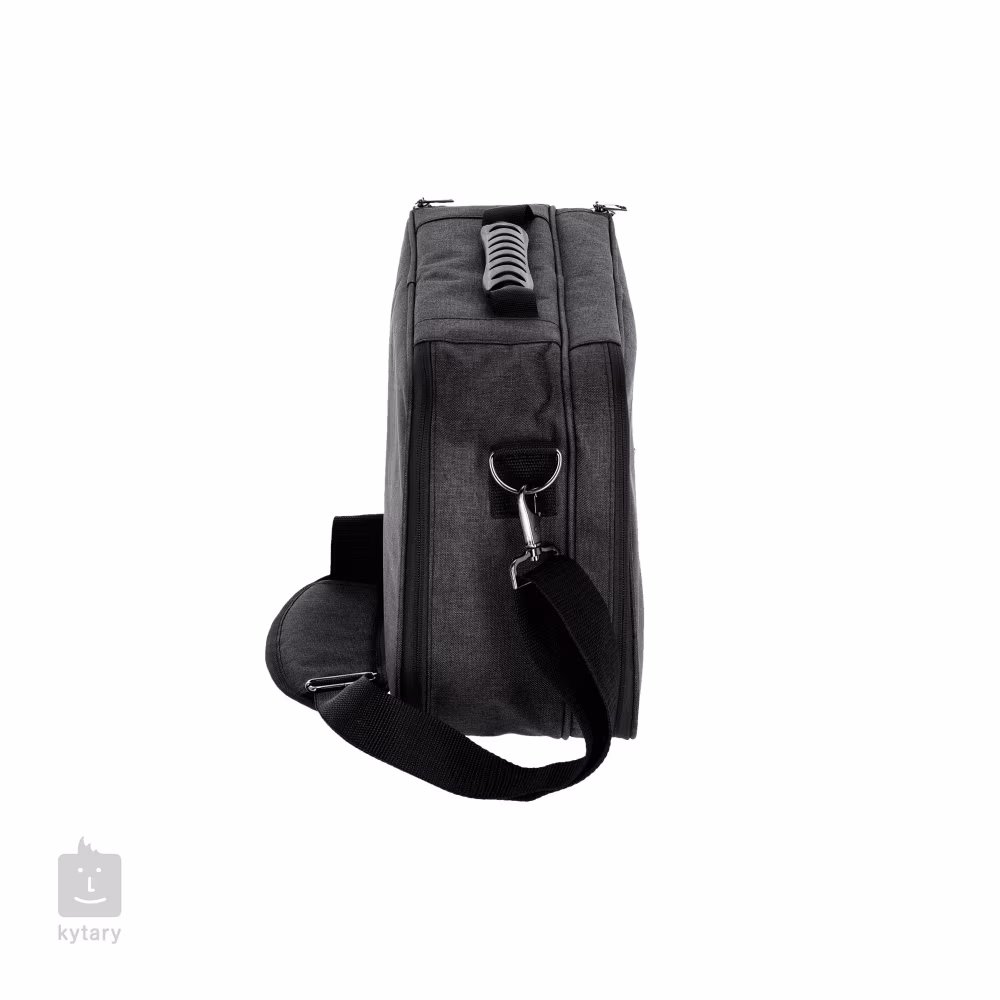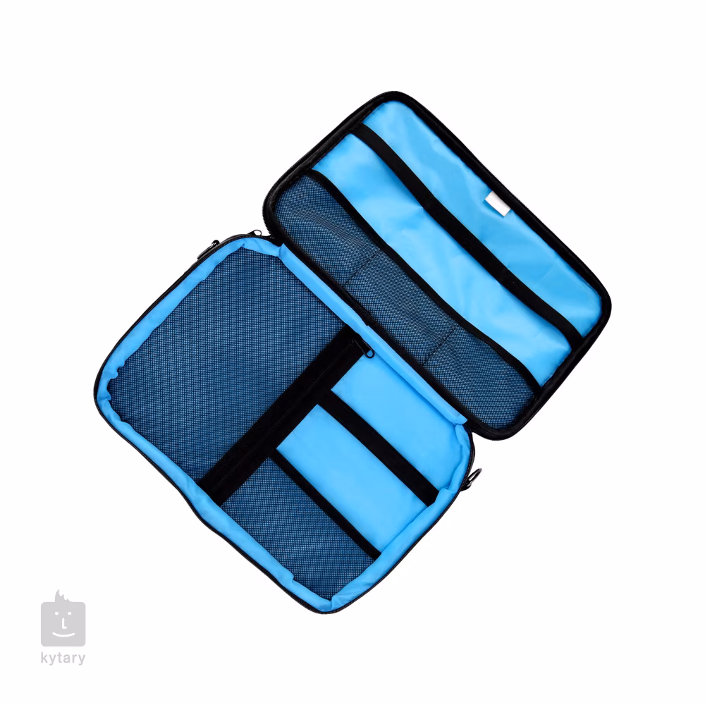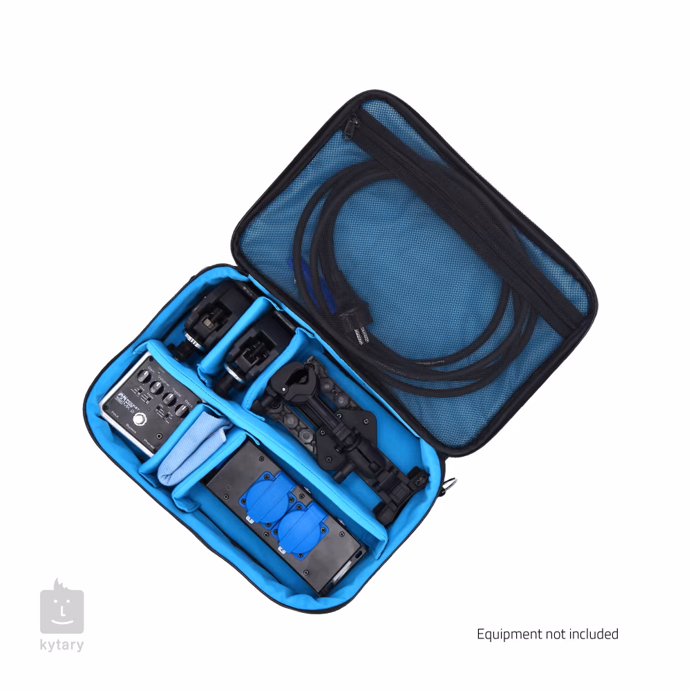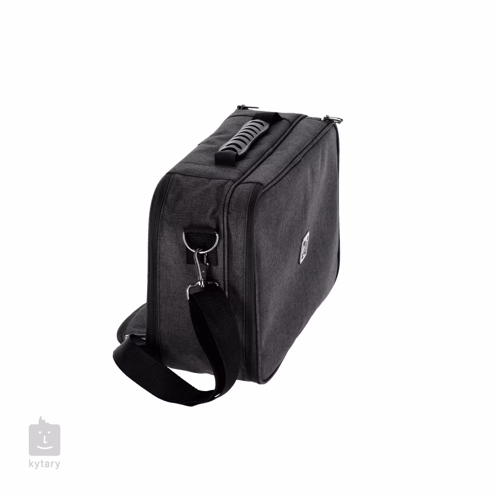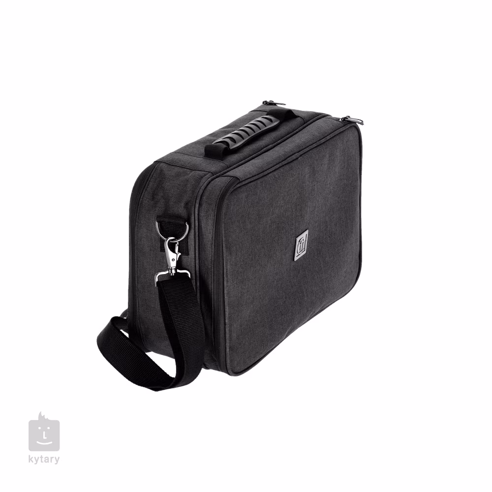Transportkoffer, geeignet für Kabel, Mikrofone und anderes kleines Zubehör. Der Innenraum ist mit speziellen Taschen, Fächern und herausnehmbaren Wänden ausgestattet, die eine flexible Nutzung ermöglichen. Der ergonomisch geformte Handgriff und der Schultergurt sorgen für einen bequemen Transport.