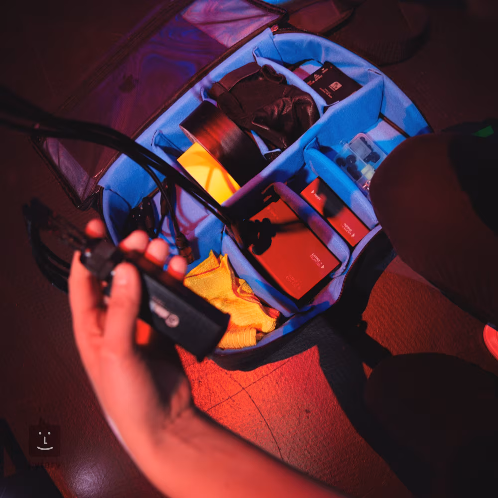 Gepolsterte Tragetasche für Kabel und anderes Zubehör, Größe XL (21"). Verfügt über ein Innenfach zur sicheren Aufbewahrung von Kabeln und anderem Zubehör sowie einen ergonomischen Griff und einen abnehmbaren Riemen zur einfachen Handhabung.