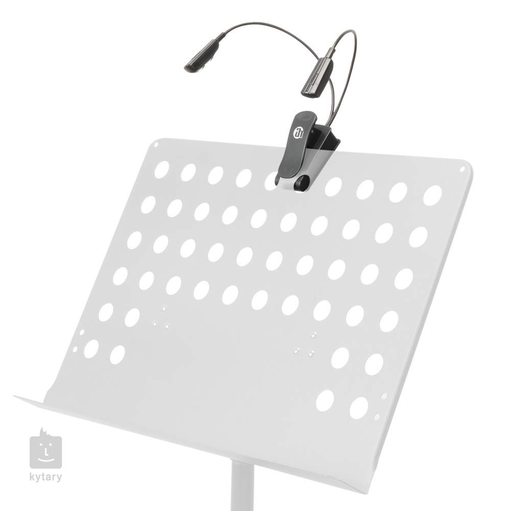 Kompakte Lampe für Notenpulte. Die Beleuchtung erfolgt durch vier helle LEDs und kann zwischen zwei Helligkeitsmodi umgeschaltet werden. Dank ihrer langen Lebensdauer ist die Lampe auch für Reisen geeignet.