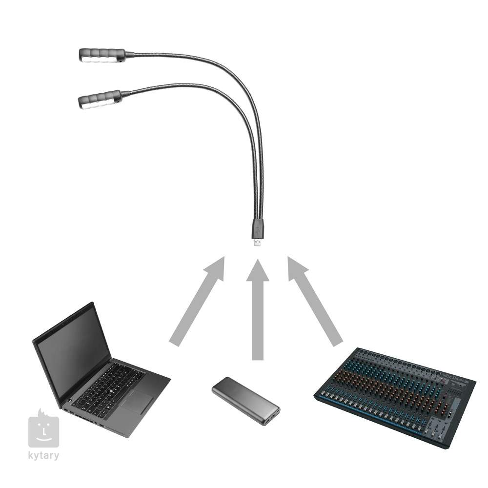 USB-Lampe mit zwei 45 cm langen Schwanenhälsen und vier sehr hellen COB-LEDs.