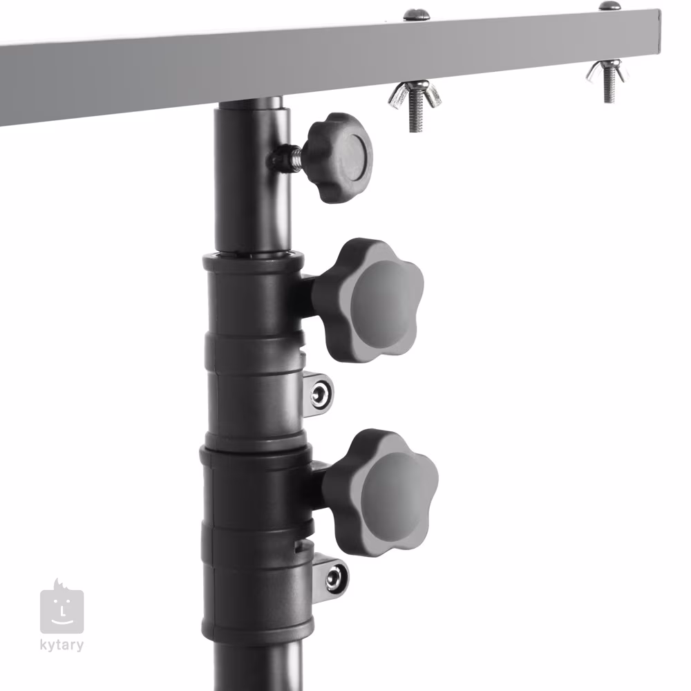 Das Adam Hall SLTS 09 Lichtstativ ist für die Aufhängung von vier Leuchten ausgelegt. Es handelt sich um ein stabiles Stativ aus Stahl mit einer Tragfähigkeit von bis zu 30 kg, das mit Qualitätsgewinden aus langlebigem Kunststoff ausgestattet ist. Selbstverständlich ist die Höhe von 1400 bis 3200 mm einstellbar. Das Stativ enthält eine 106 cm lange Schiene zum Aufhängen von vier Scheinwerfern. Vier Schrauben und Muttern sind im Lieferumfang enthalten.