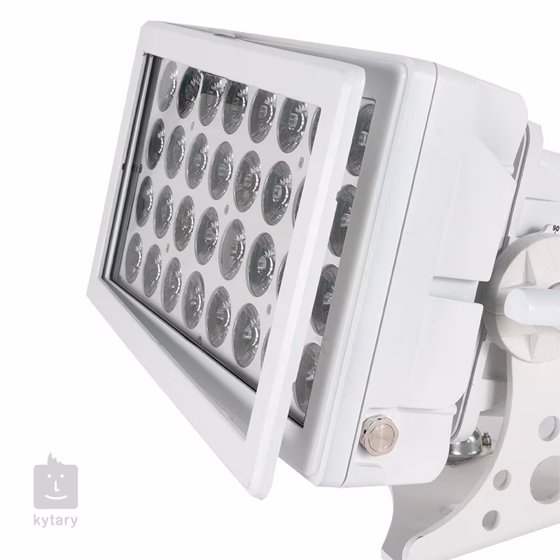 Das Gerät kann über das Standard-DMX512-Protokoll oder das RDM-Protokoll gesteuert werden. Auf der Rückseite des Geräts befindet sich ein übersichtliches Bedienfeld mit Display und Tasten für eine einfache manuelle Einstellung. Der Reflektor ist mit 5-poligen DMX-Anschlüssen und PowerCon-Stromanschlüssen mit Schutzart IP65 ausgestattet. Im Lieferumfang enthalten sind ein IP-geschütztes Netzkabel, zwei Sicherheitskabel sowie ein Frostschutzfilter und ein Metallrahmen.