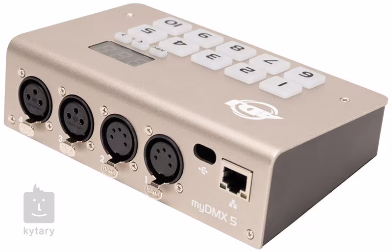 Mit dem Kauf von AJD MyDMX 5 erhalten Sie eine intuitive Software mit einer Reihe von praktischen Funktionen. Gleichzeitig erhalten Sie ein kompaktes DMX-Interface, das Sie ganz einfach über USB-C oder auch über RJ-45 Ethernet mit Ihrem Computer verbinden können. Mit dieser Schnittstelle können Sie bis zu 10 Szenen (im Live- oder Stand-Alone-Modus) speichern und einfach abrufen. Auf dem Stand Alone-Speicher können Sie bis zu 99 Szenen auf 5 Seiten speichern - diese Kapazität lässt sich mit einer SD-Karte weiter ausbauen. Das Interface verfügt über zwei 3-polige und zwei 5-polige DMX-Ausgänge.