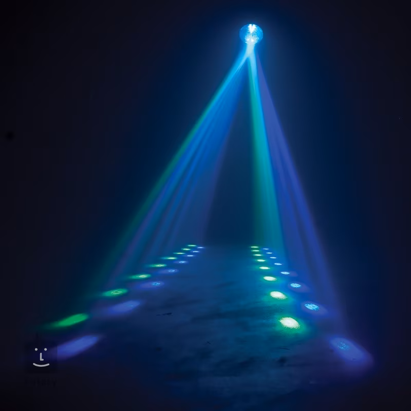 Zur Steuerung des Geräts können Sie das Standard-DMX512-Protokoll oder das übersichtliche Bedienfeld auf der Rückseite des Geräts mit Display und Tasten verwenden. Es stehen drei Steuerungsmodi zur Verfügung - DMX, automatischer Show-Modus oder Sound-Steuerung. Sie können die Vorteile der Stand-Alone-Konfiguration oder des Primär-/Sekundär-Modus nutzen. Eine drahtlose Steuerung ist mit UC IR oder Airstream IR Controllern möglich, diese sind jedoch nicht im Lieferumfang enthalten. Das Gerät ist mit 3-poligen DMX-Anschlüssen und IEC-Stromanschlüssen ausgestattet. Eine Halterung für die Montage an einer Trägerstruktur ist im Lieferumfang enthalten.
