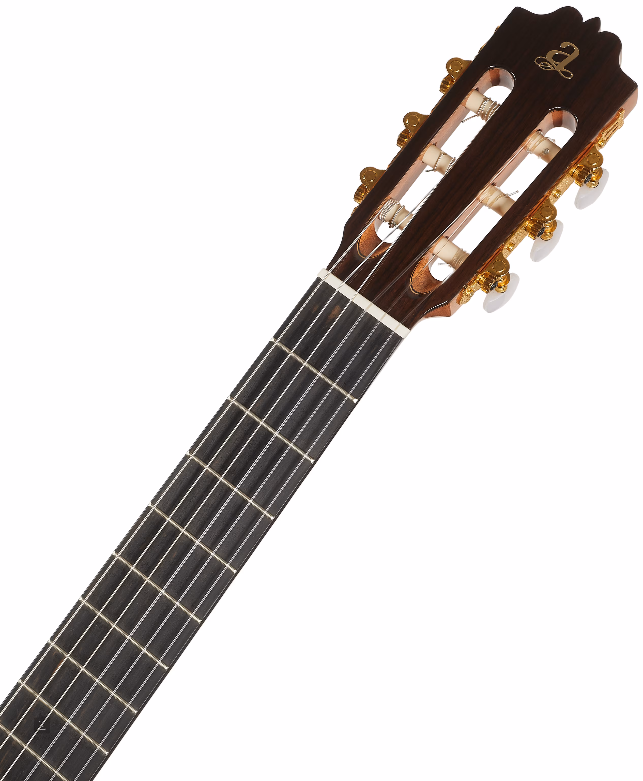 Die Admira ADM15 Konzertgitarre ist ein halbmassives, handgefertigtes Instrument, das auch die erfahrensten Musiker ansprechen kann. Die Vorderseite der Gitarre ist aus massivem Zedernholz gefertigt, während Boden und Zargen aus laminiertem Palisanderholz bestehen. Der Hals aus afrikanischem Mahagoni hat eine Palisanderbeleistung, und das Griffbrett ist aus Ebenholz. Für eine gute Stimmung sorgen die Saitenbefestigung in hochwertigen, klassisch vergoldeten Mechaniken und das Griffbrett aus Palisander. Die stilvolle Verarbeitung wird durch traditionelle Elemente in Form einer Rosette, mehrschichtigen Holzleisten und dem Firmenlogo auf der Kopfplatte unterstrichen.