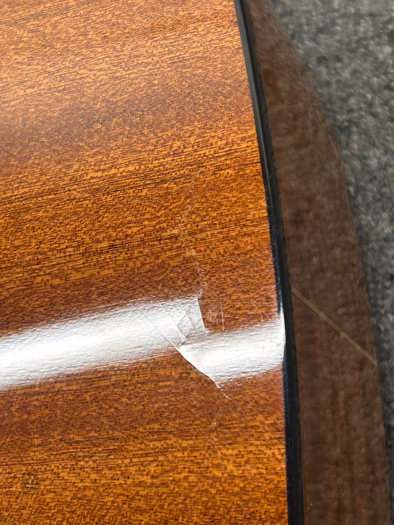 Riss auf der Rückseite (siehe Foto). Ansonsten ist das Instrument neu und in Ordnung.