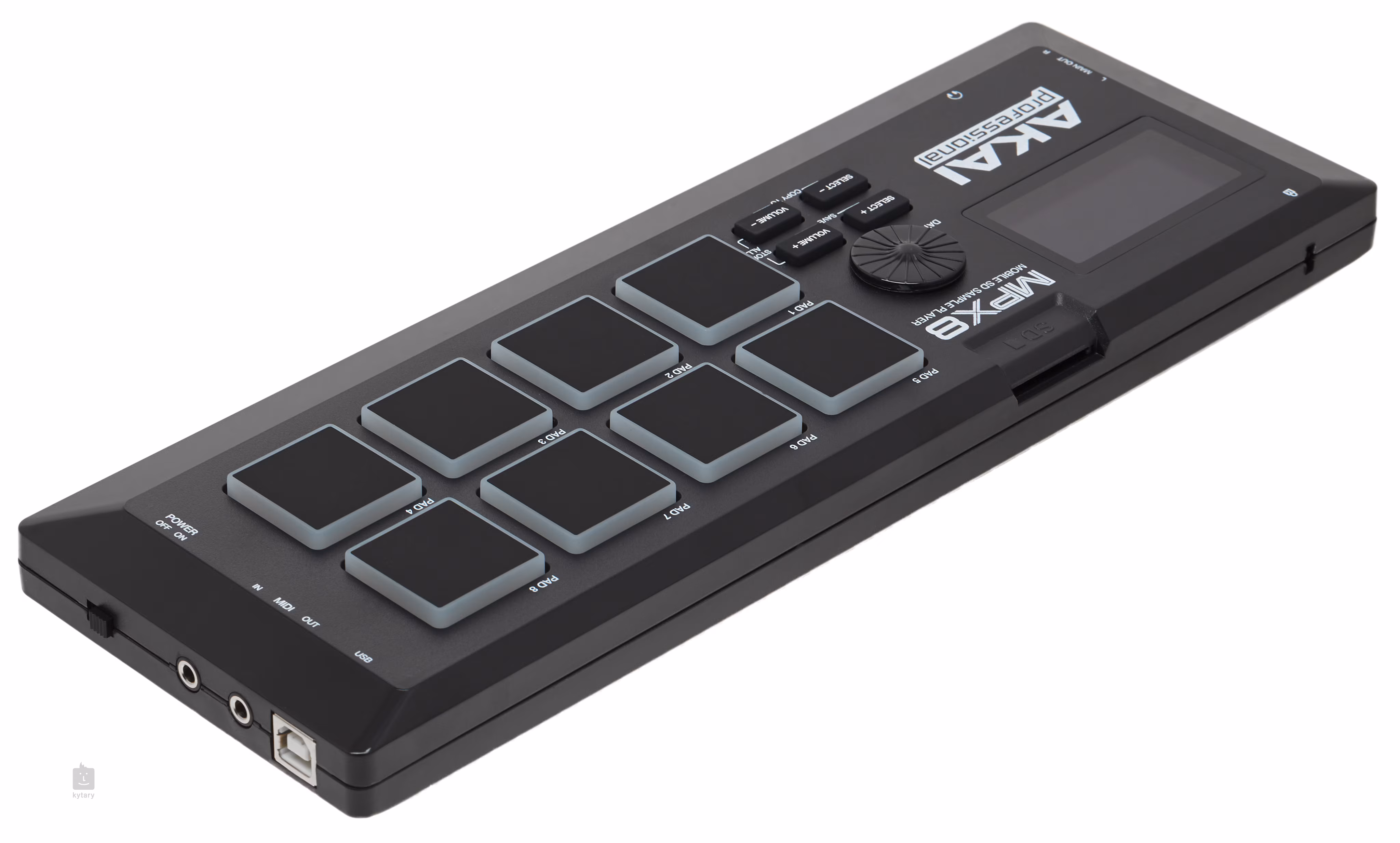 Der MPX8 ist eines der innovativsten Akai Professional Pad-Tools, die derzeit erhältlich sind. Der Benutzer kann praktisch jedes beliebige Sample auf die SD-Karte des MPX8 laden (im Akai-Format) und dieses Sample dann einem der acht hintergrundbeleuchteten, anschlagdynamischen Pads zuweisen. Der MPX8 verfügt außerdem über eine riesige Bibliothek an integrierten Standard-Audio-Samples, die sofort für Live-Performances verwendet werden können - egal ob Sie vor einem Publikum, im Radio oder im Studio stehen. Das helle, blau beleuchtete Display und die intuitiven Bedienelemente sorgen dafür, dass das Gerät bei allen Lichtverhältnissen bequem zu bedienen ist. Es verfügt über einen Kopfhörerausgang mit 3,5-mm-Klinke und zwei symmetrische 6,3-mm-Klinkenausgänge. Aus der MIDI-Welt gibt es einen klassischen fünfpoligen MIDI-Anschluss und USB-MIDI-Ein- und Ausgänge. Der Probenehmer hat keinen Mikrofoneingang.