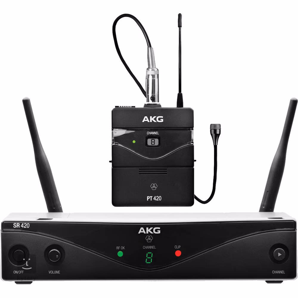 Das WMS420 von AKG ist ein kabelloses System mit einfacher und schneller Einrichtung, das sich für eine Vielzahl von Situationen eignet – Konzerte, Konferenzen, Vorträge, Präsentationen und vieles mehr. Für die Übertragung stehen bis zu 8 Kanäle zur Verfügung.