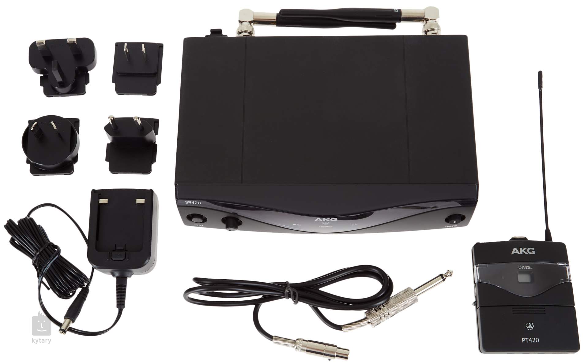 Das Set besteht aus dem Empfänger SR420, dem Handsender PT420 und dem Instrumentenkabel.