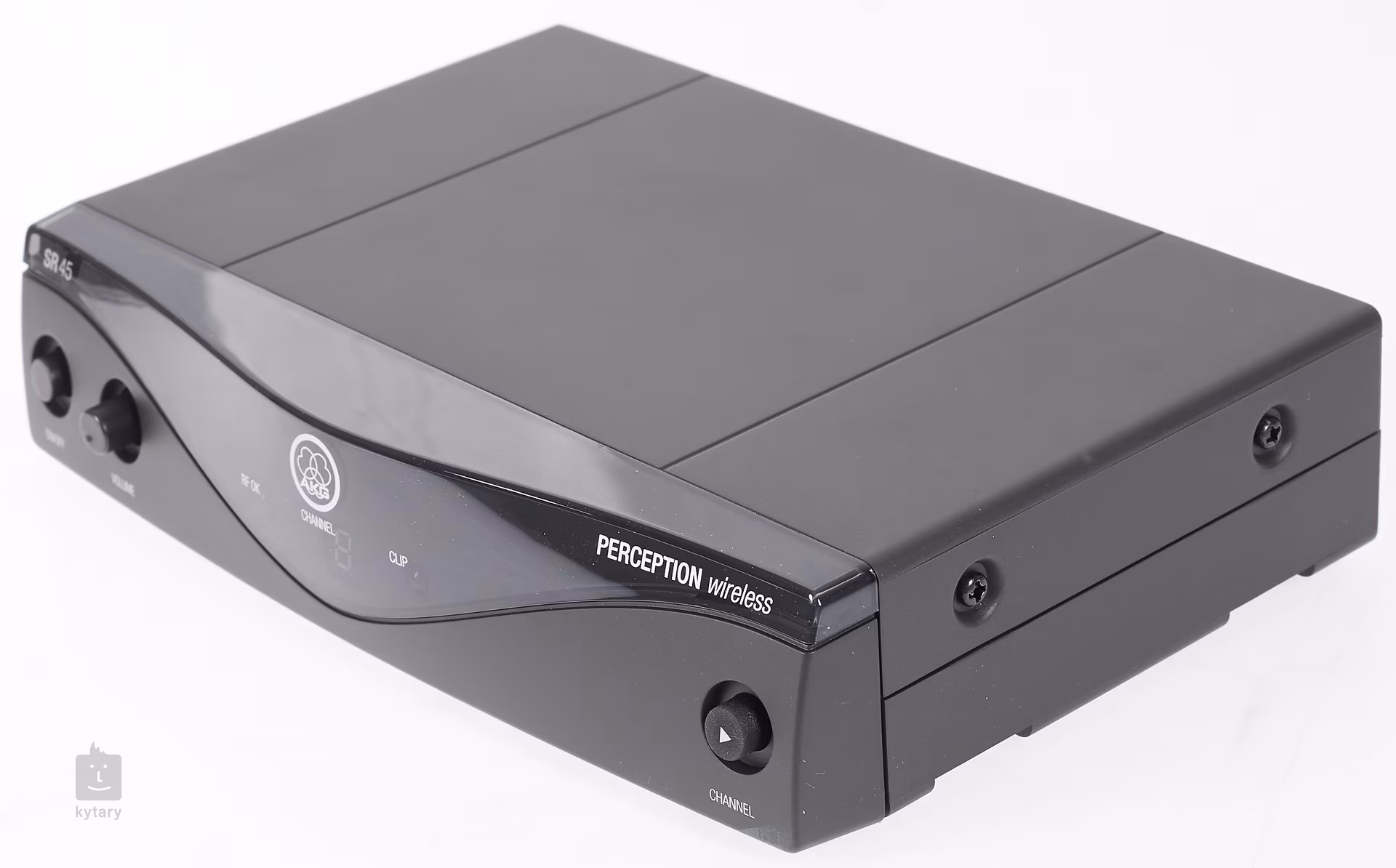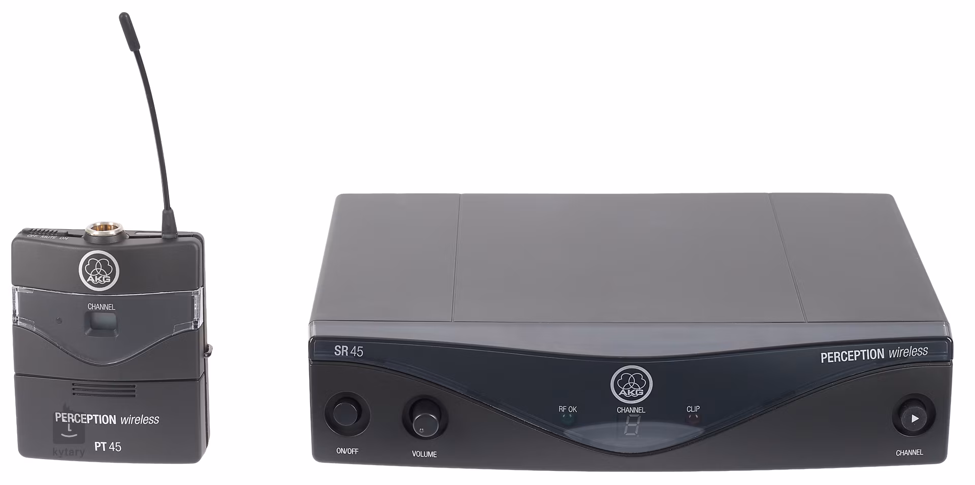 Das AKG Perception Wireless Instrumental Set beinhaltet den AKG SR45 Empfänger und den AKG PT45 Taschensender. Der Empfänger verfügt über ein Minimum an Bedienelementen am Gehäuse, ohne dass die Parametereinstellung in irgendeiner Weise beeinträchtigt wird. Zu den Bedienelementen gehören ein Lautstärkepotentiometer, eine Kanaltaste zum Umschalten der Kanäle, ein LED-Display zur Anzeige des gewählten Kanals, LED-Signal- und Clipping-Anzeigen, ein Netzschalter und ein Trimmer zur Einstellung der Rauschsperre. Die Ausgänge sind mit XLR- und 1"-Klinkensteckern ausgestattet. Der Bodypack PT45 ist der kleinste und leichteste Sender seiner Klasse und darüber hinaus kompatibel mit AKG MicroMics Miniaturmikrofonen, die eine hochwertige Intonation aller gängigen Instrumente ermöglichen. Der PT45 verfügt über ein Display, eine LED-Batterieanzeige und einen Netzschalter, während sich unter der Batterieabdeckung ein Kanalschalter und ein Trimmer zur Einstellung des Eingangspegels befinden. Das Bodypack wird mit einer einzigen AA-Batterie betrieben, die eine Betriebsdauer von bis zu 10 Stunden ermöglicht.