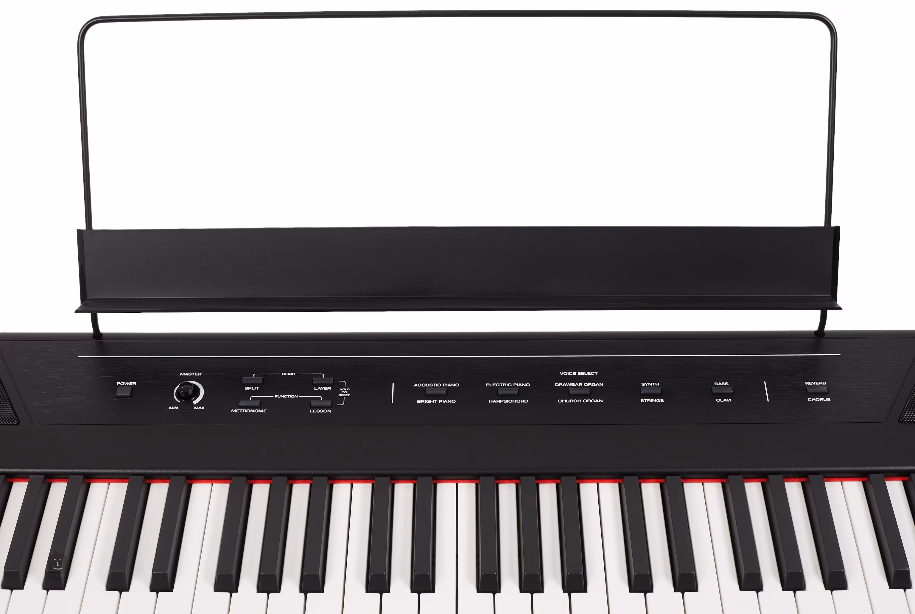 Das Piano Concert eignet sich sowohl für fortgeschrittene als auch für angehende Pianisten und verfügt über einen Lernmodus, der die Tastatur in zwei gleiche Abschnitte (Tonart und Klang) unterteilt, sodass Lehrer und Schüler gemeinsam auf einem Instrument spielen können. Selbstverständlich verfügt es über ein integriertes Metronom, einen RCA-Ausgang für ein PA-System oder Mischpult, einen Kopfhörerausgang für den „Silent Mode“, Lautsprecher mit einer Leistung von bis zu 20 W und einen USB-Anschluss für den Anschluss an einen PC oder Laptop. Im Lieferumfang enthalten sind ein Sustain-Pedal, ein Netzteil, ein Notenständer, eine dreimonatige Lizenz für Skoove Premium – eine Musik-Lern-App – und ein zweimonatiges Abonnement für Videokurse bei TakeLessons.