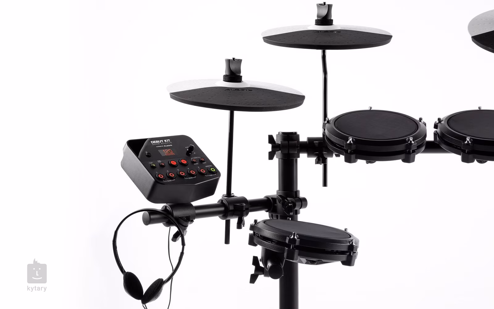 Das Herzstück dieses Kits ist das Debut-Drum-Modul, das 10 Drum-Kits und insgesamt bis zu 120 individuelle Drum-Sounds mit Dynamic Articulation-Technologie enthält. Dadurch erhalten sie unglaublich realistische Spiel- und Klangeigenschaften. Neben den hervorragenden Klangeigenschaften verfügt das Modul natürlich auch über eine Vielzahl von Anschlussmöglichkeiten. So können Sie zum Beispiel die beiden 6,3-mm-Klinkenausgänge nutzen, um ein externes Soundsystem anzuschließen oder um leise über Kopfhörer zu üben. Sie haben auch eine MIDI-Steuerung und eine USB-Verbindung zu Ihrem Computer. Dank des 3,5-mm-Klinkeneingangs können Sie einen mp3-Player, ein Tablet oder ein mobiles Gerät anschließen, um mit Ihren Lieblingssongs zu jammen.
