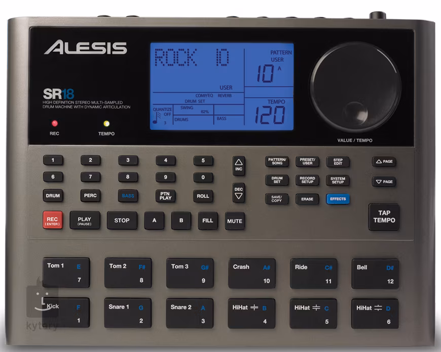 Ein automatischer Schlagzeuger mit einer Polyphonie von 32 Stimmen und dynamischer Artikulation von Klängen.