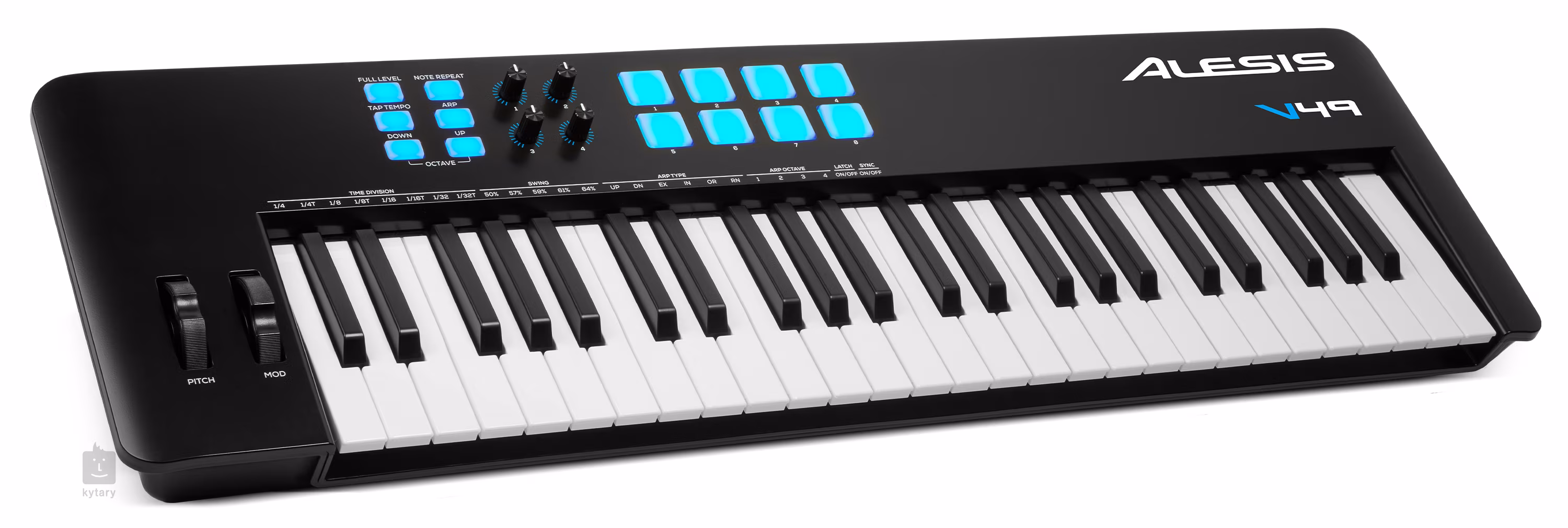 Das V49 MKII ist die zweite Serie eines relativ einfachen, aber vielseitigen MIDI-Keyboards mit einer anschlagdynamischen Tastatur mit 49 Tasten, acht anschlagdynamischen PADs und zusätzlichen programmierbaren Reglern. Sein großer Vorteil ist die Benutzerfreundlichkeit: Einfach in den USB-Anschluss des Computers einstecken, der Controller schaltet sich ein, die Bedienelemente leuchten auf und schon kann man spielen. Die zweite Generation des erfolgreichen USB/MIDI-Keyboards verfügt über ein neues Tastaturdesign und ein neu gestaltetes Bedienfeld, das sich nun an der Oberseite und nicht wie bei der Vorgängerserie an der linken Seite befindet.