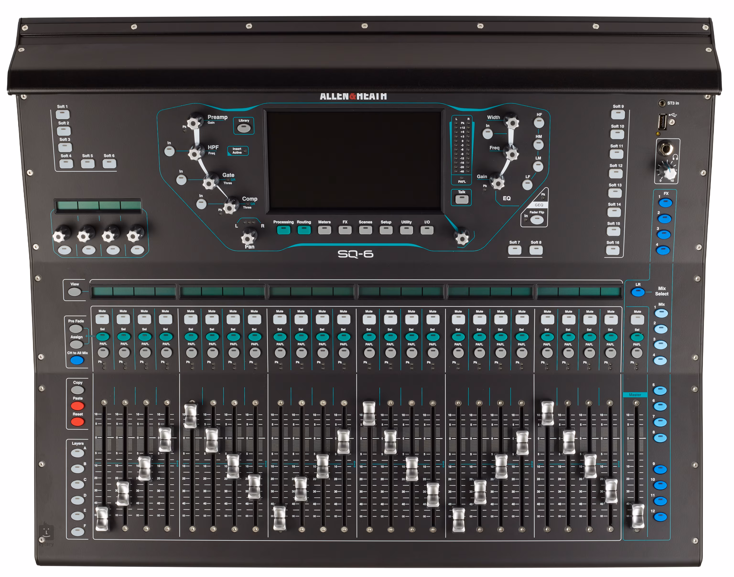 Das SQ6 ist ein professionelles digitales Mischpult mit der XCVI 96 kHz FPGA Engine als Herzstück. Damit eignet er sich für große Veranstaltungen, Konferenzen, Live-Übertragungen und gesellschaftliche Zusammenkünfte aller Art. In jedem Fall bietet es einen hochauflösenden Klang und eine minimale Latenz von <0,7 ms. Die Konsole verfügt über 24 Mikrofonvorverstärker und acht Stereo-Effekteinheiten mit eigenen Rückkanälen und Zugriff auf die RackExtra FX-Effektbibliothek. Der Kopfhörer kann mit zwölf Stereomischungen konfiguriert werden, und die automatische Mikrofonmischung ist praktisch für Konferenzen.