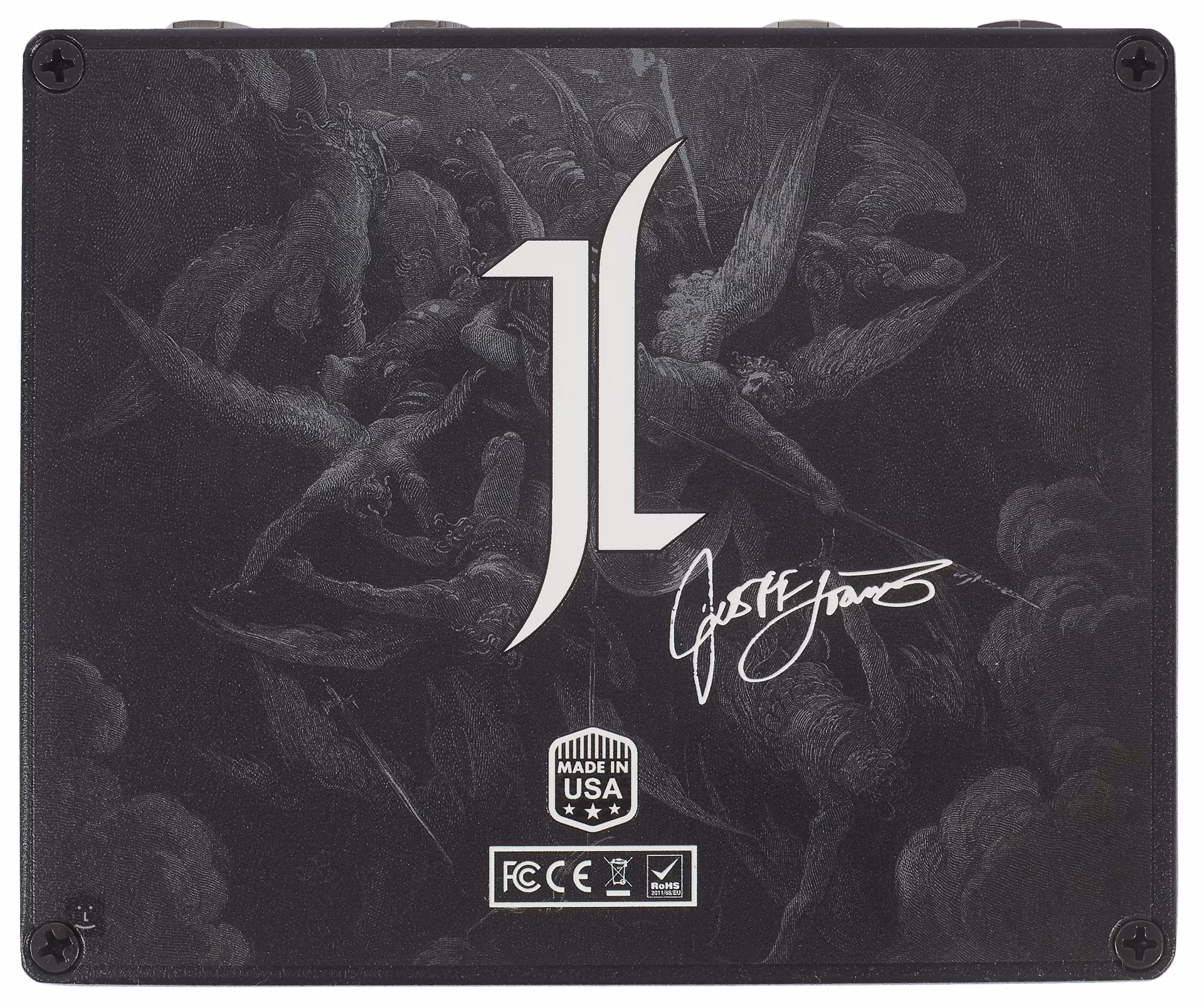 Allpedals Devil's Triad ist ein umfassendes Effektpedal, das in Zusammenarbeit mit Jeff Loomis (Jeff Loomis, Conquering Dystopia, ex-Nevermore) als seine All-in-One-Lösung für Konzertperformance und Studioarbeit entwickelt wurde. Es handelt sich um ein Overdrive-/Distortion-Pedal mit separaten Booster- und Reverb-/Delay-Effektsektionen, das eine breite Palette von Signal-Routing-Optionen bietet, d.h. klassisch mit zwei Kabeln, mit zwei Kabeln mit Ausgang zum Return der Effektschleife des Instruments (Devil's Triad als Preamp), mit vier Kabeln mit zwei Signalwegen (Ausgang zu zwei verschiedenen Instrumenten) oder mit vier Kabeln mit Mono-I/O und Effektschleife.