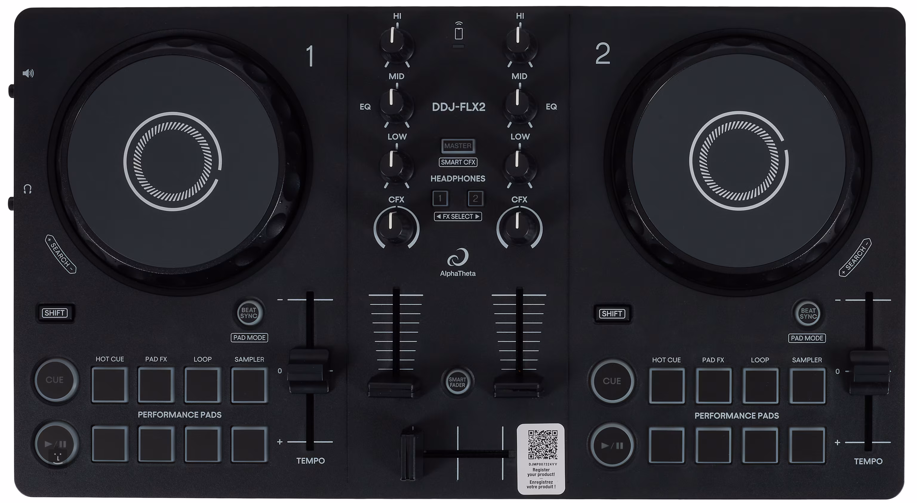 Weitere Merkmale 8 Arten von Beat FX 6 Arten von Klangfarben-FX 8 Hot Cues pro Deck Dedizierte Beat-Jump-Buttons Dedizierte Beat-Loop-Bedienelemente 2 Mikrofoneingänge