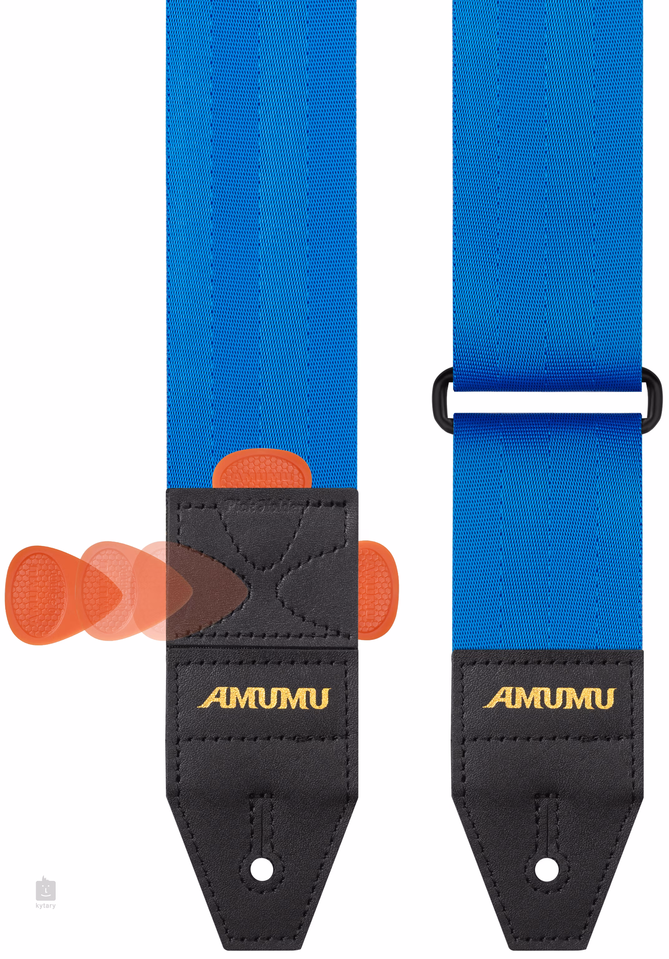 Der Gitarrengurt DURALINK™ Seatbelt with Pickholder der Marke AMUMU ist eine praktische und zuverlässige Lösung für alle Gitarristen und Bassisten. Er besteht aus extrem strapazierfähigem 1000D-Nylon, dessen Struktur an einen Sicherheitsgurt erinnert, und verfügt an jedem Ende über eine hochwertige Lederkappe für einen festen Halt des Instruments. Eines der Endstücke ist zusätzlich mit drei Öffnungen zur Aufbewahrung von Plektren ausgestattet, sodass Sie im Falle eines plötzlichen Verlusts immer ein Ersatzplektrum zur Hand haben.