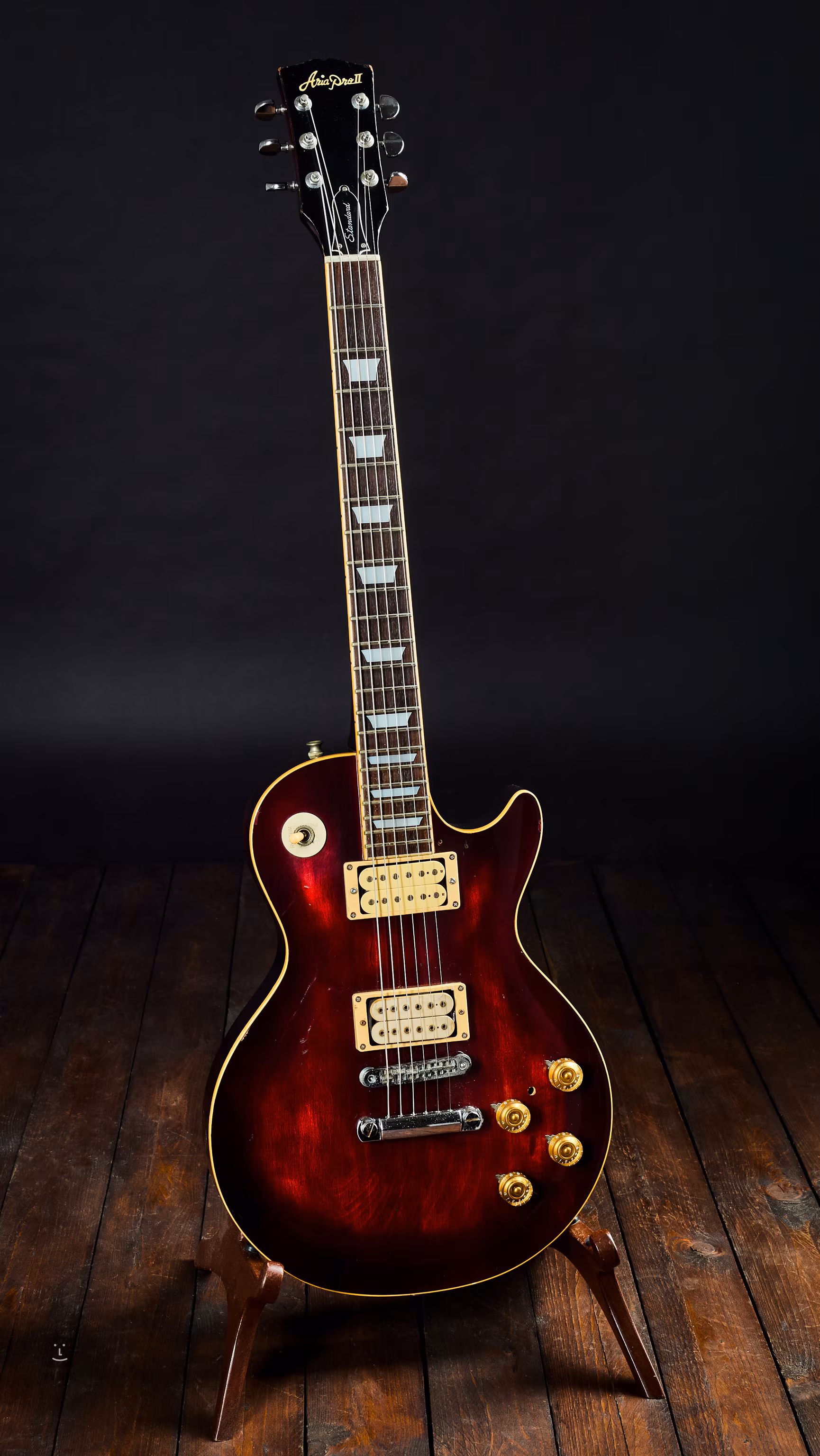 Eine Lawsuit Les Paul des japanischen Herstellers Aria Pro II, wahrscheinlich um die Wende der 70er und 80er Jahre des letzten Jahrhunderts hergestellt.