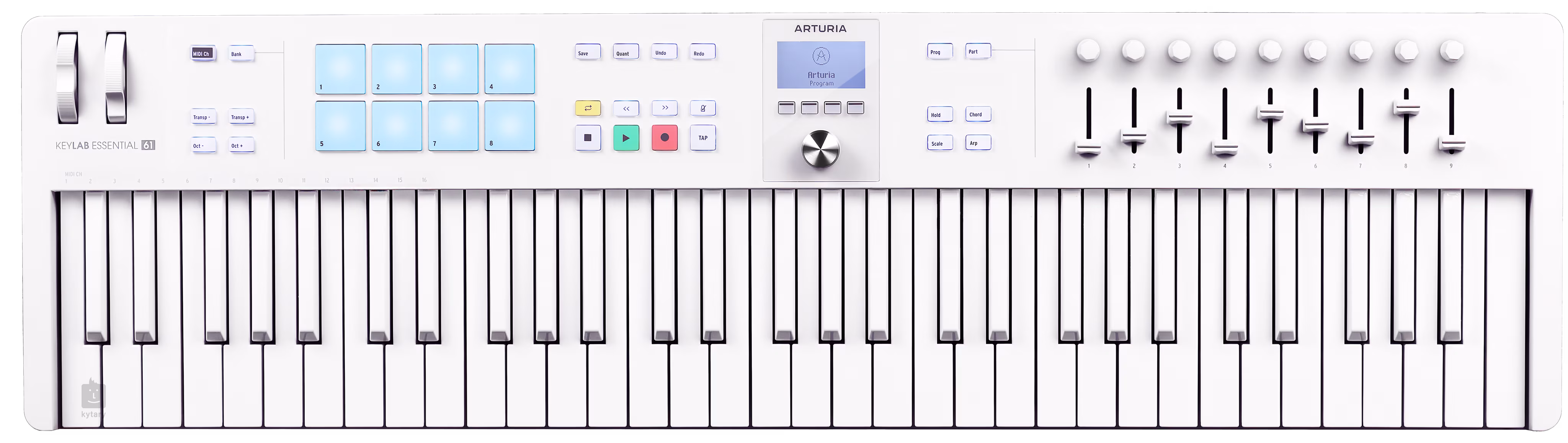 Arturia KeyLab Essential 61 MK3 ist ein innovatives MIDI-Keyboard, das für Produzenten, Musiker und DJs entwickelt wurde. KeyLab Essential kombiniert ein hochwertiges Keyboard, fortschrittliche Bedienelemente und MIDI-Konnektivität, um eine umfassende und vielseitige Steuerung zu ermöglichen.