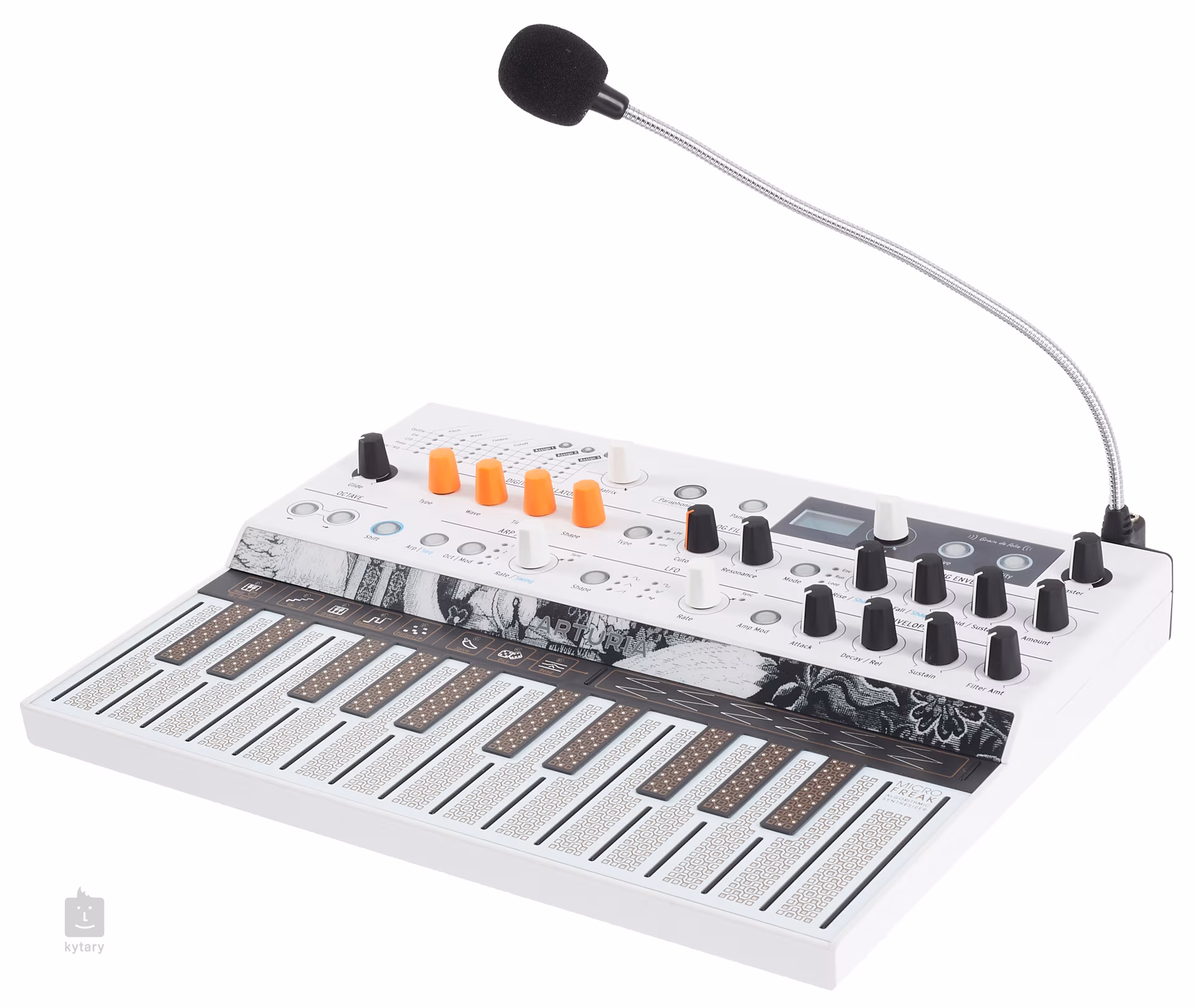 Der Arturia Microfreak Vocoder ist eine limitierte Auflage des originellen Synthesizers mit digitalen Oszillatoren, analogem Filter und Sounds aus dem beliebten Eurorack-Modul Plaits von Mutable Instruments. Die Vocoder-Serie enthält außerdem ein abnehmbares Mikrofon mit Schwanenhals für die Erstellung melodischer Gesangslinien. Er funktioniert sowohl im monophonen als auch im paraphonen Modus, besticht durch eine flache Tastatur mit polyphonem Aftertouch und verfügt über einen Sequenzer, einen Arpeggiator, eine Modulationsmatrix sowie erweiterte Zufallsfunktionen. In dieser Preisklasse ist er definitiv eines der interessantesten Instrumente.