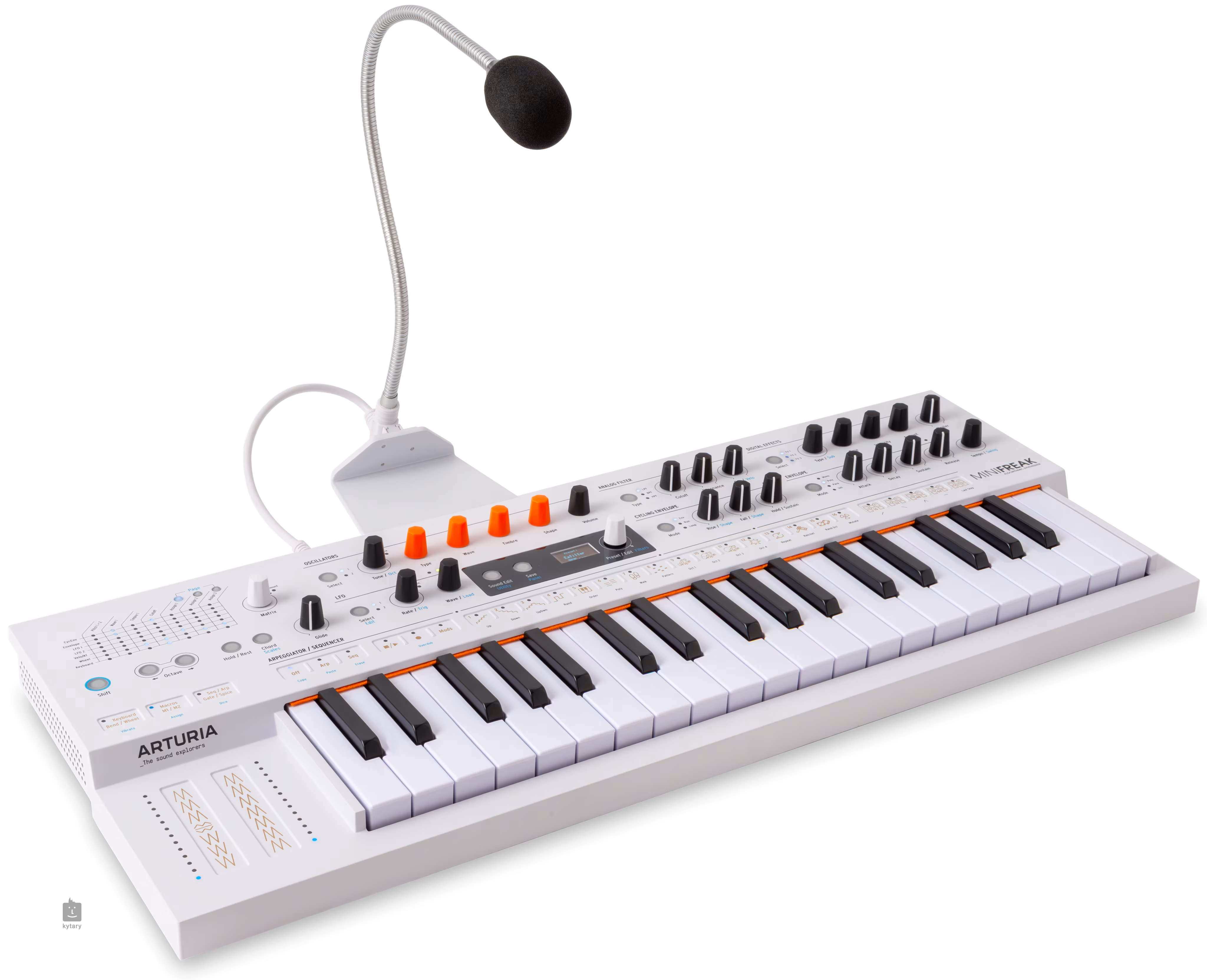Im Lieferumfang enthalten sind der MiniFreak Vocoder selbst, ein 30cm Schwanenhals mit Mikrofon und Ständer, ein 12V-Netzteil, ein USB-Kabel und eine Registrierungskarte. Zusätzlich zur Hardware erhalten Sie auch MiniFreak V - eine originalgetreue Software-Version im VST-Format, die den Sound und die Architektur des Geräts widerspiegelt und eine vollständige Integration in Ihre DAW ermöglicht.