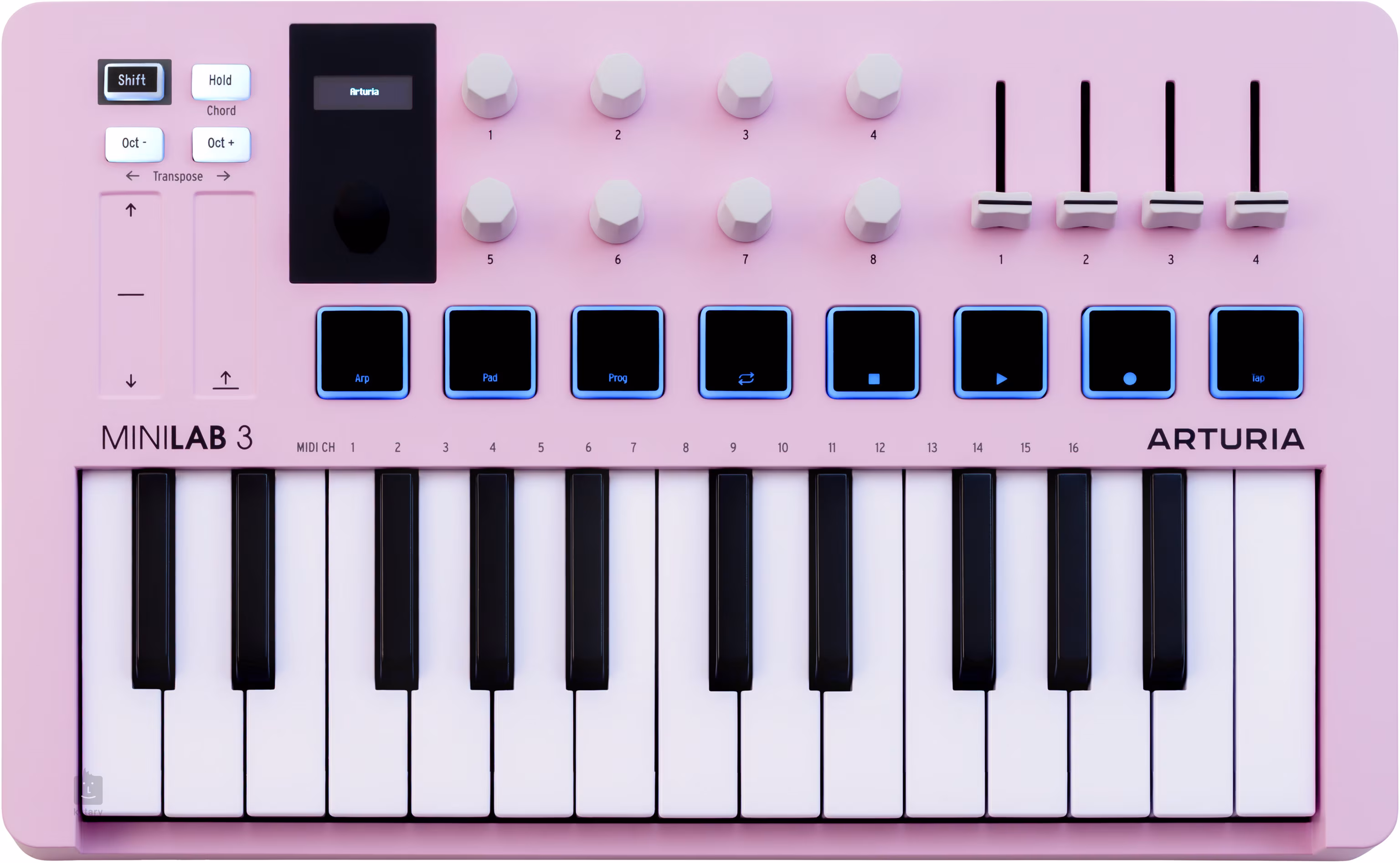Der MiniLab 3 ist ein ultrakompakter MIDI-Controller, der sowohl als Einstiegsgerät für absolute Anfänger dienen kann, als auch bei professionellen Musikern beliebt ist.