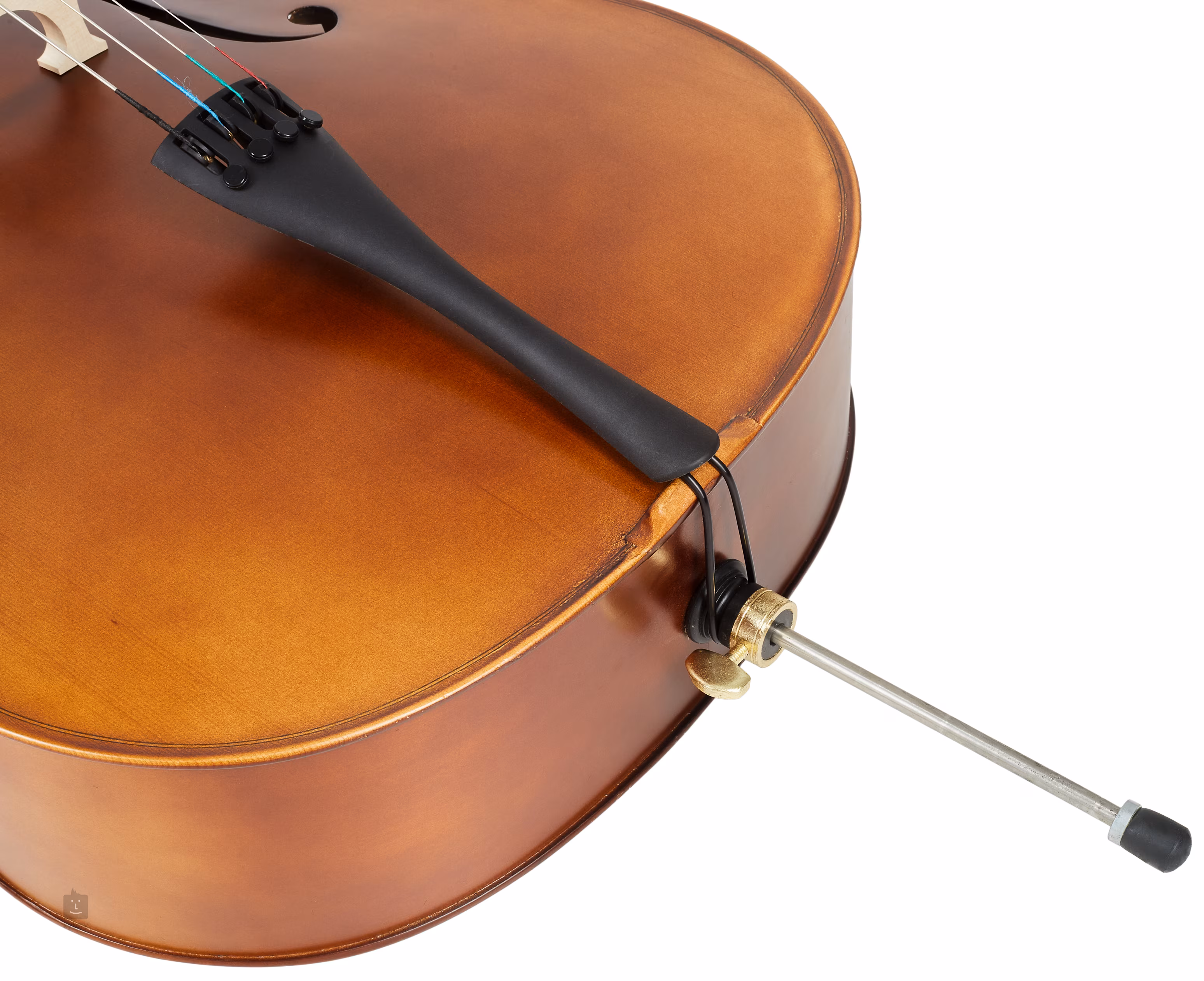 Dieses Cello-Set ist besonders für Anfänger geeignet, die keine großen Summen in ihr erstes Instrument investieren wollen. Das gesamte Instrument ist aus Massivholz gefertigt, und zwar aus Fichtendecke und leicht geflammtem Ahorn an Zargen und Boden. Das Griffbrett und die Stimmwirbel sind aus gebeiztem Birnbaumholz, das Saitenbrett ist aus Metall. Das Instrument ist mit einem mattbraunen Lack überzogen. Zum Lieferumfang gehören außerdem ein Etui und ein Bogen, und es wird direkt vom Hersteller betriebsbereit geliefert.
