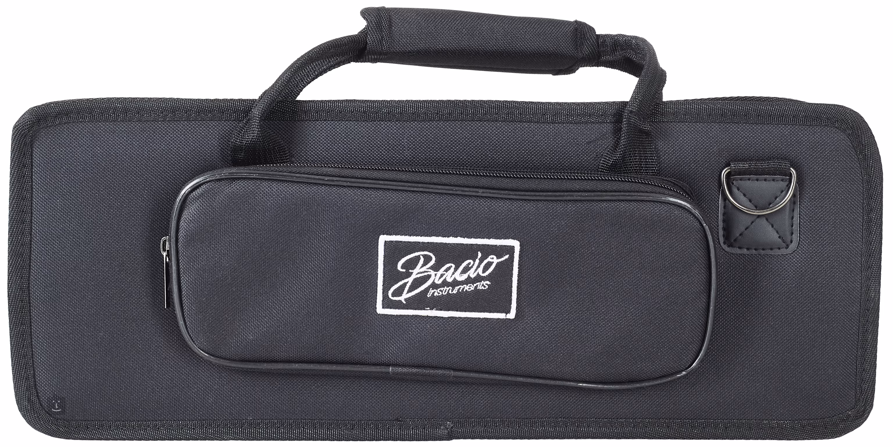 Leichter Bacio-Flötenkoffer aus strapazierfähigem Synthetikgewebe mit einer Außentasche für Zubehör.