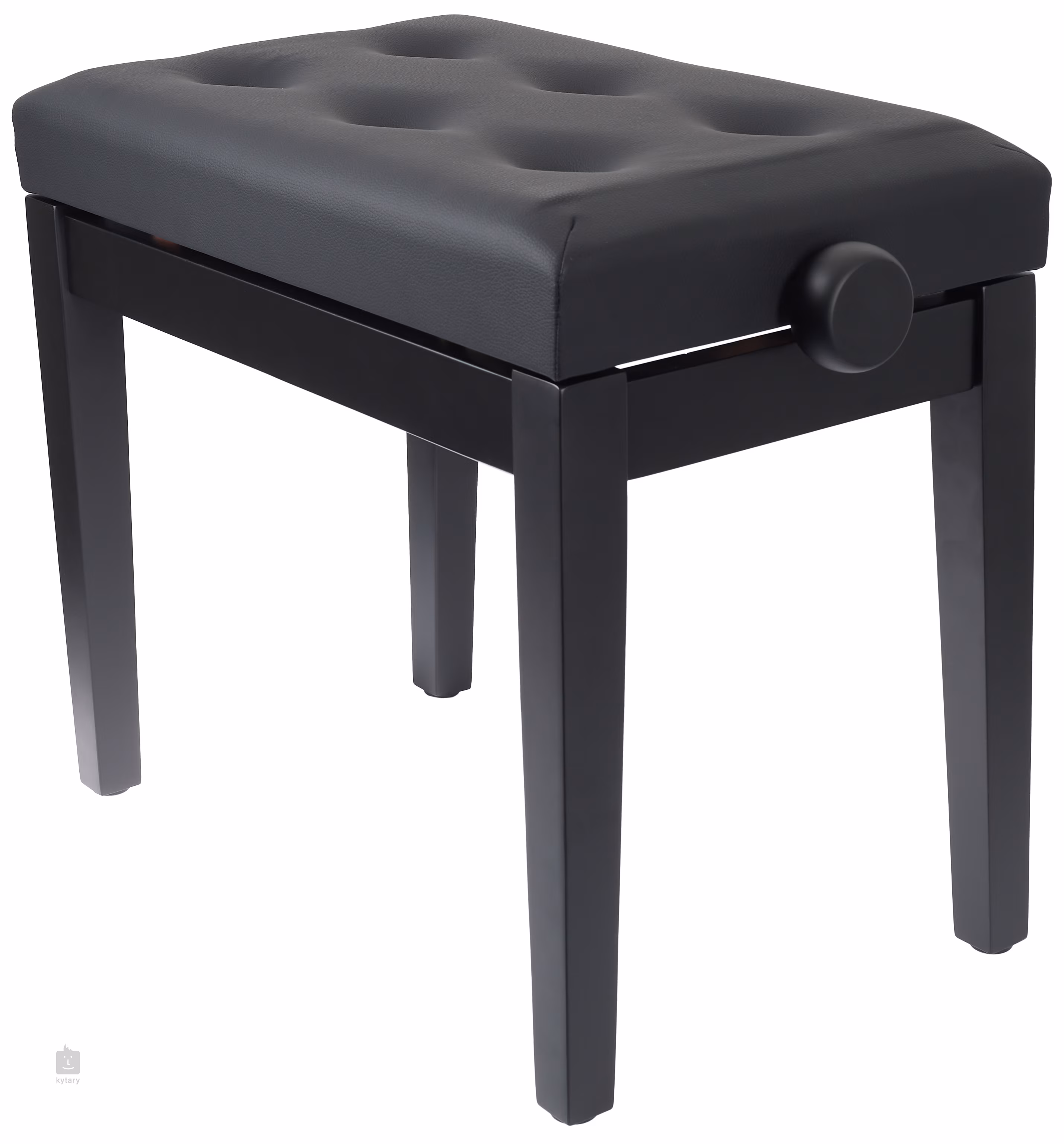 Klappbarer Klavierhocker in elegantem schwarzem Design, geeignet für das Üben zu Hause und auf Reisen. Die verstellbare Höhe sorgt für eine ideale Passform für jeden Spieler und der bequeme Sitz sorgt für perfekten Komfort auch bei langen Übungseinheiten. Die Konstruktion besteht aus Metall und der Sitz ist mit Kunstleder bezogen.