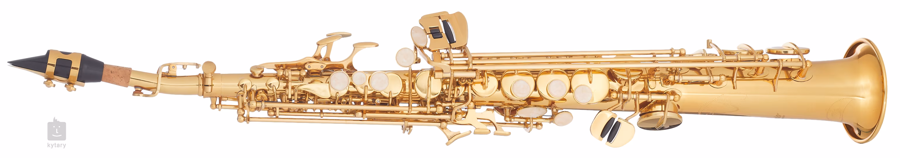 Das Sopransaxophon BSS-100 hat einen Messingkörper, einen geraden Hals und eine Goldlackierung. Das Saxophon wird in einem weichen Koffer zusammen mit einem Mundstück, einer Ligatur und Zubehör (Gurt, Zifferblatt) geliefert.