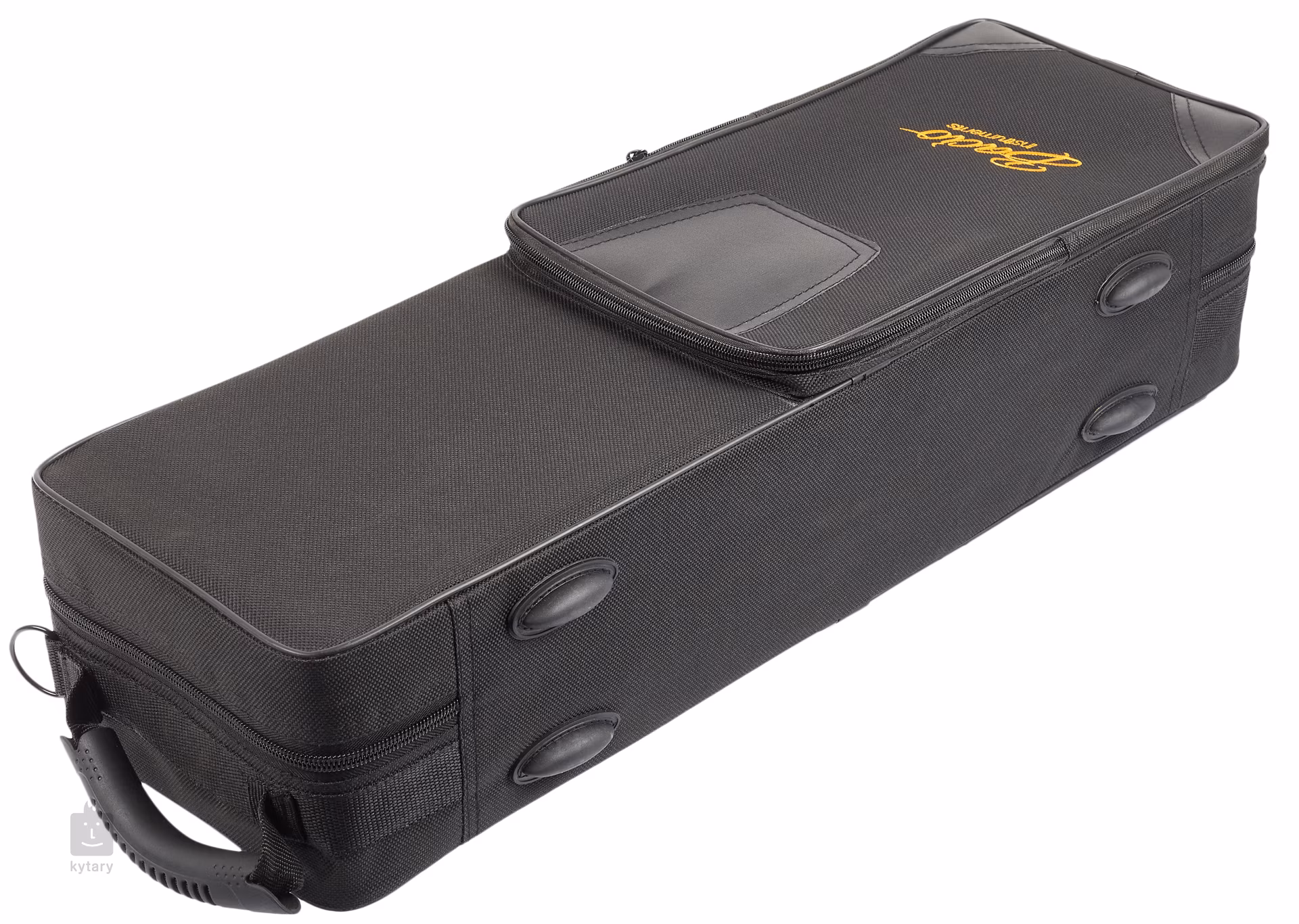 Sopransaxophonkoffer aus strapazierfähigem Kunststoffgewebe. Verstauen Sie Zubehör in der Außentasche.