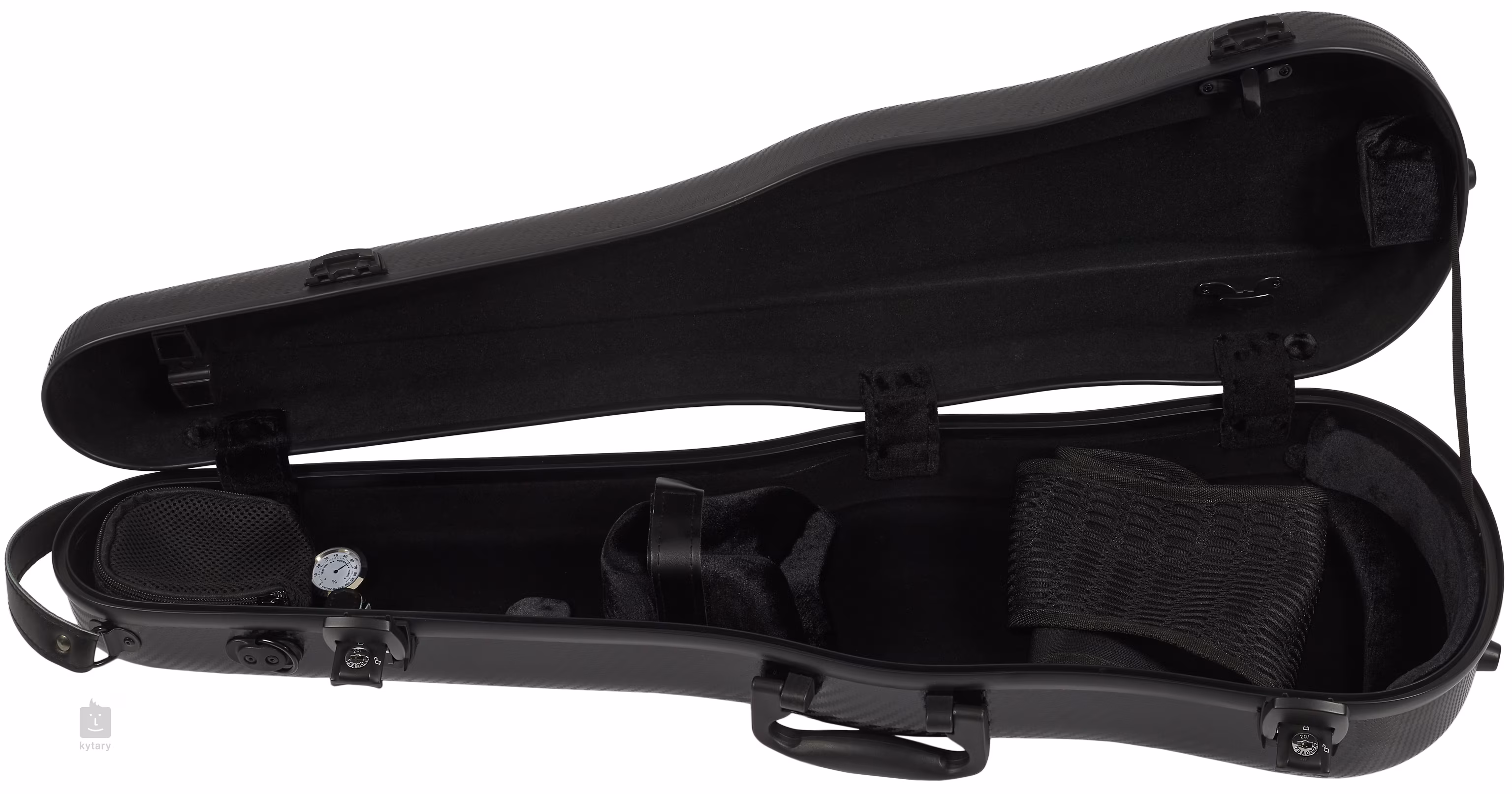 Der Geigenkoffer SVC501 von Bacio Instruments ist aus Polycarbonat gefertigt. Er verfügt über zwei Griffe an der Oberseite und an der Seite, zwei Rückengurte, eine Hygrometer- und Schulterstützenbefestigung, eine Zubehörtasche und zwei Passwortschlösser. Mit einem Nettogewicht von 1,8 kg ist er eine leichte und dennoch robuste Lösung für den sicheren Transport von Geigen.