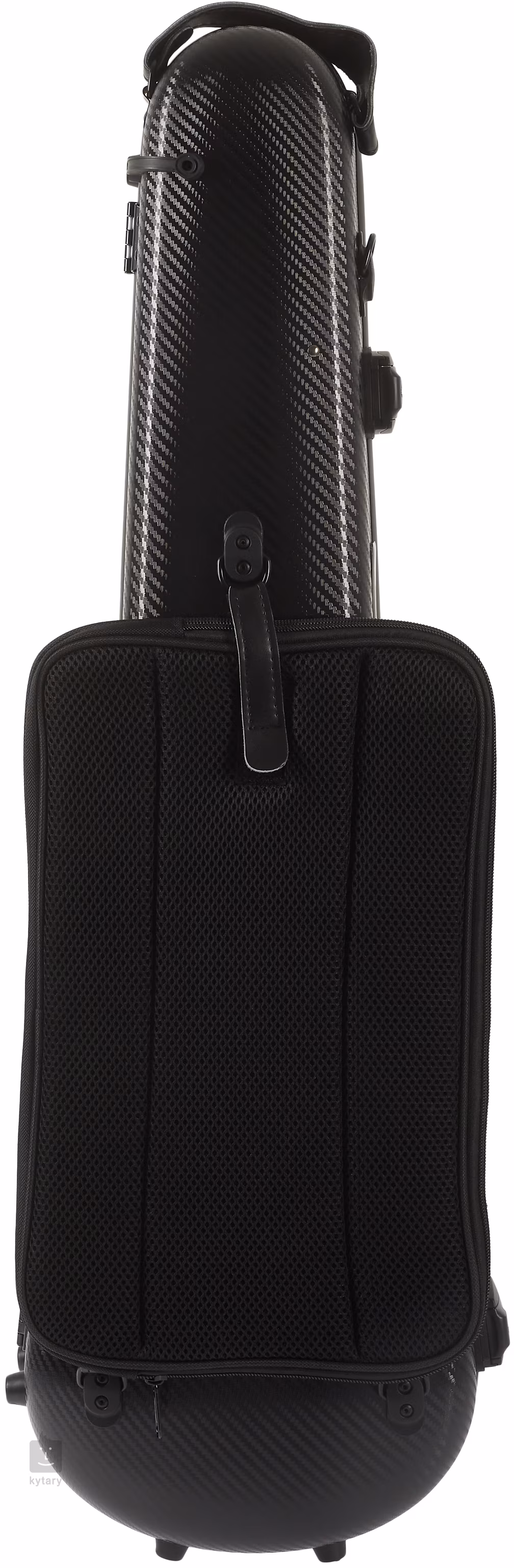 Geigenkoffer aus Kohlefaserverbundstoff mit zwei Schlössern und Code/Passwort-Entriegelung, abnehmbarem Notenfach, Griffen an den Seiten und oben, zwei Schulterriemen und zwei Bogenhaltern.