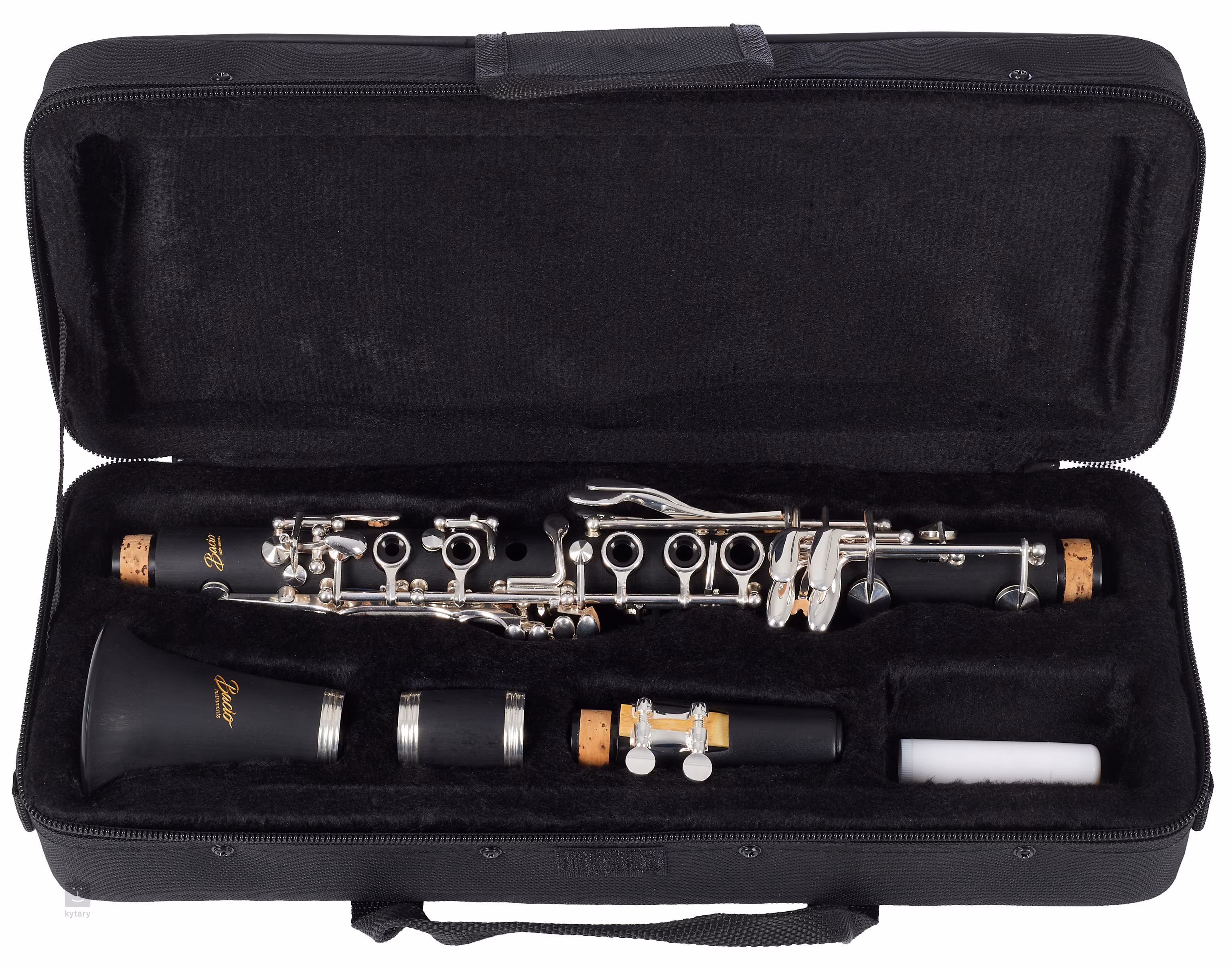 Die Es-Klarinette ECL-100 verwendet das französische Bundierungssystem, das Böhm-System, das weltweit am weitesten verbreitet ist. Es hat einen ABS-Körper (Kunststoff), siebzehn versilberte offene Klappen, fünf Ringe und eine verstellbare Daumenauflage. Die Klarinette wird zusammen mit dem Mundstück, der Ligatur und dem Hut in einem praktischen Softcase geliefert.
