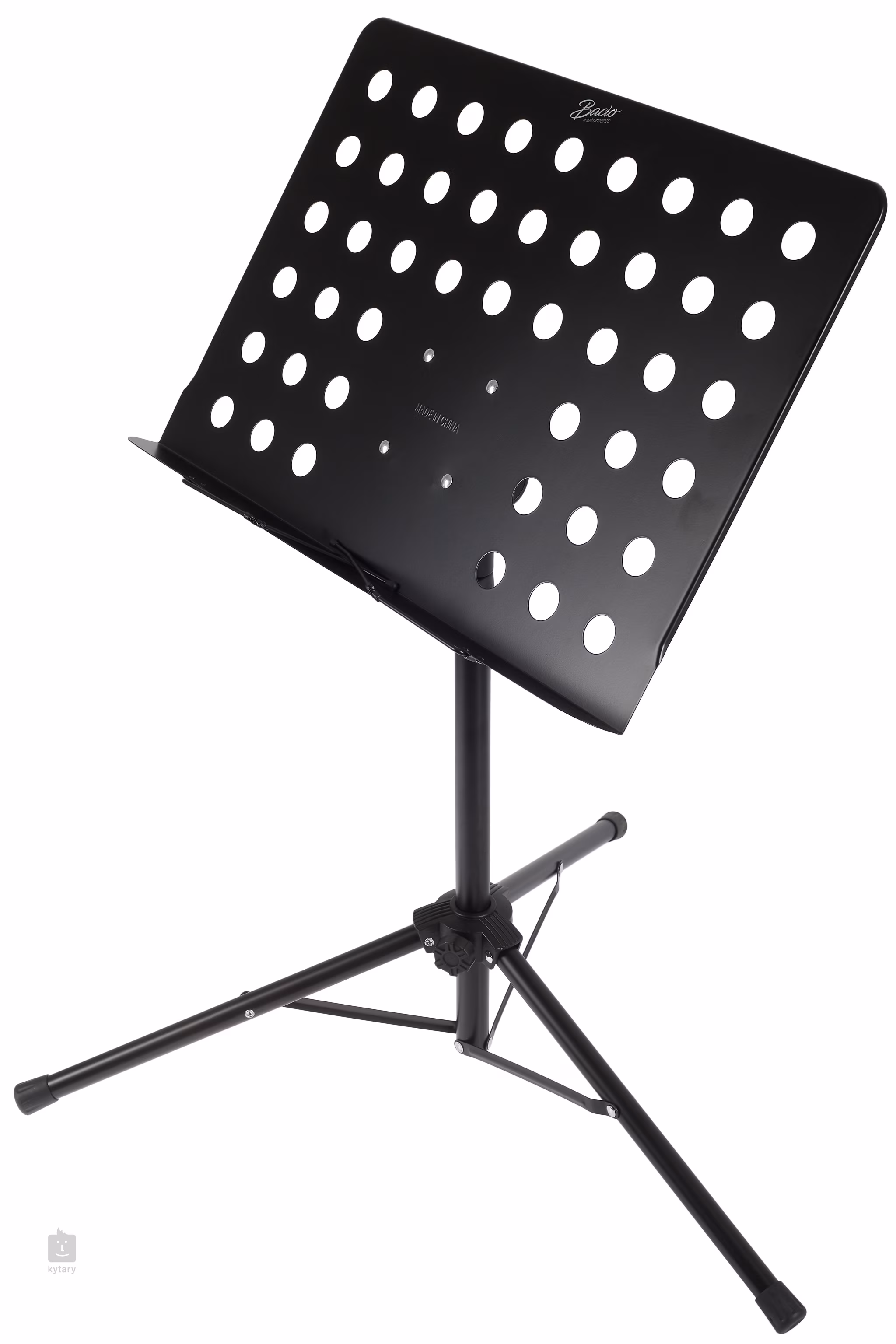 Das Bacio MS-06 ist ein Metall-Notenpult mit Dreibeinfuß, verstellbarer Höhe (760 - 1450 mm) und einem festen Notenpult mit verstellbarer Neigung.