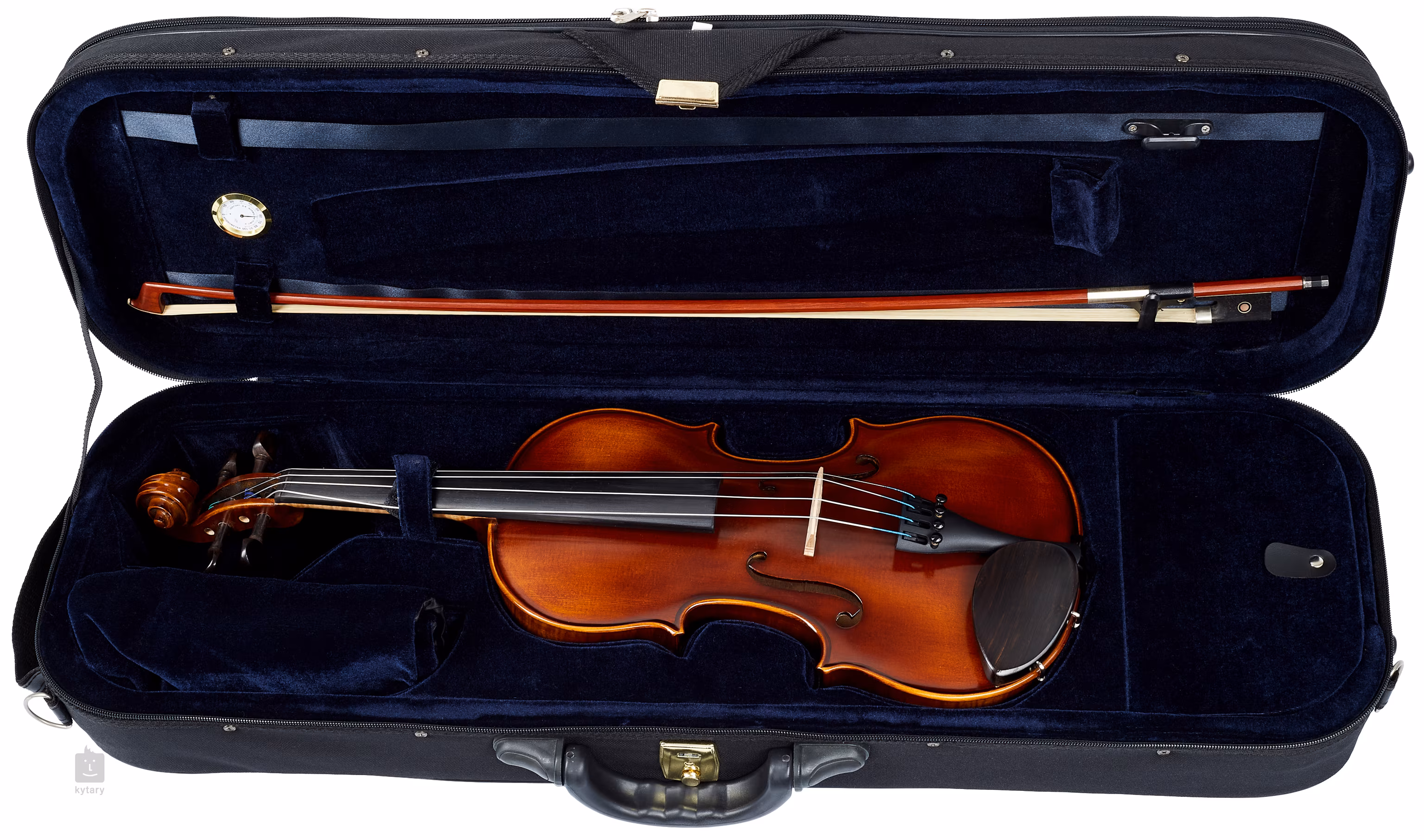 Diese Geige ist eine ideale Wahl für diejenigen, die ein Qualitätsinstrument zu einem vernünftigen Preis suchen. Sie besteht aus massiver Fichtendecke, während der Boden und die Zargen aus massivem Ahorn gefertigt sind. Griffbrett und Resonanzboden sind aus Ebenholz gefertigt. Der Klang ist daher angenehm farbig und vielfältig. Die Geige wird mit einem Brasilholzbogen und einem Ebenholzgriffbrett in einem leichten, gepolsterten Koffer mit Hygrometer, Deckel und Zubehörfach geliefert.