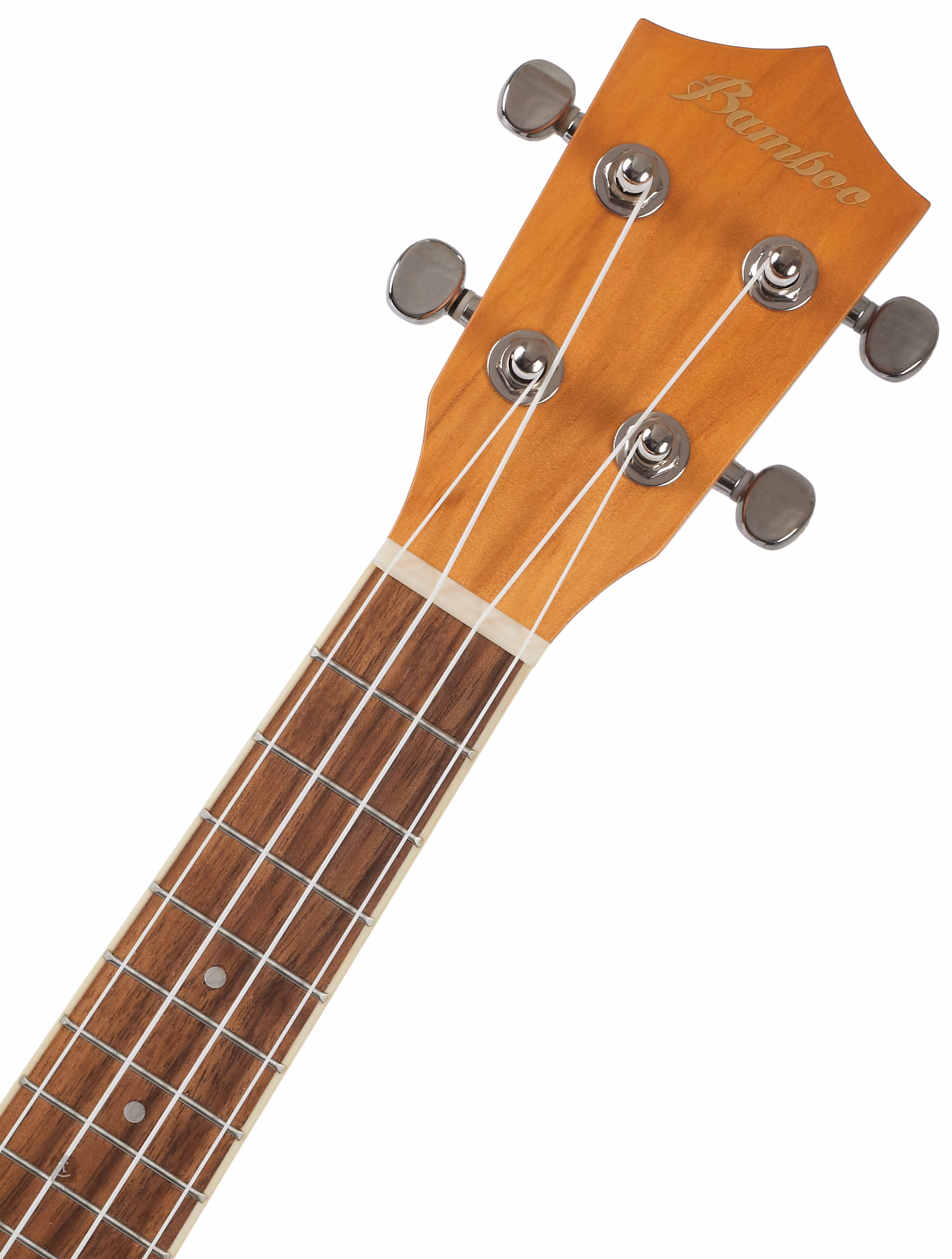 Die New Generation Linie von Bamboo bietet erschwingliche Ukulelen in Konzert- und Soprangröße, die mit farbenfrohen grafischen Motiven verziert sind. Die Sopran-Ukulele U-21 PATAGONIA hat einen Korpus aus Linden-Sperrholz, einen Okoumé-Hals, ein Griffbrett aus Walnussholz und eine gitarrenähnliche Saitenbefestigung durch Null- und Sattelbünde aus Knochen. Das Instrument wird in einem Koffer geliefert.