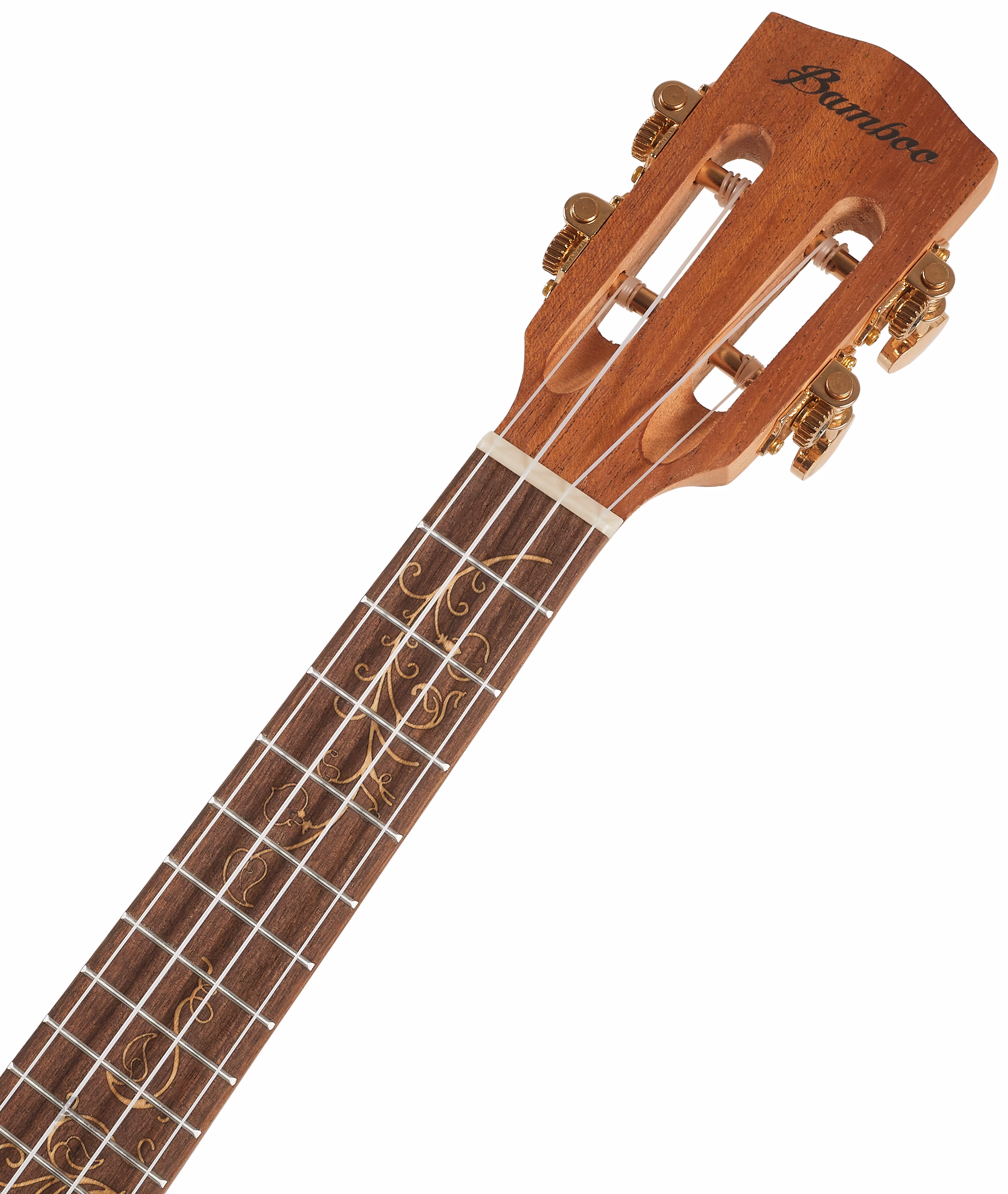 Die Konzert-Akustik-Ukulele mit der Bezeichnung Queen aus der Sonderedition der Marke Bamboo ist ein Instrument, das von Träumen und Fantasie inspiriert ist. Die Decke der Ukulele besteht aus laminierter Fichte, der Boden und die Zargen sind aus laminiertem Mahagoni gefertigt. Die Saiten sind über den Nullbund aus Knochen in offenen Stimmmechaniken in Goldoptik und einem Steg aus Walnussholz befestigt. Aus dem gleichen Material ist auch das Griffbrett gefertigt. Die stilvolle Verarbeitung wird durch eine verzierte Rosette, eine Inlay-Verzierung über die gesamte Länge des Griffbretts, eine Aussparung im unteren Teil des Korpus und eine praktische Armstütze unterstrichen. Das Instrument wird in einer Tasche geliefert. Der Reiz der Ukulele liegt darin, dass fast jeder sie leicht und sehr schnell erlernen kann. Wenn auch Sie sich der großen Familie der Ukulelenspieler anschließen möchten, zögern Sie nicht und kommen Sie vorbei, um dieses Instrument auszuprobieren.
