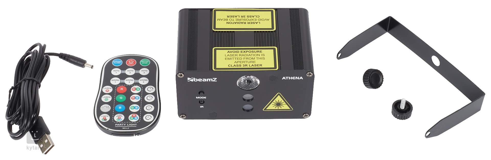 Das Athena RG Gobo-Lasersystem von BeamZ ist ein sehr kompaktes, batteriebetriebenes Gerät, das Sie absolut überall hin mitnehmen können, ohne auf eine Steckdose angewiesen zu sein. Mit einem Gewicht von 0,35 kg ist es das ideale mobile Gerät für Hauspartys, kleinere Clubs und besondere Veranstaltungen. Sein Herzstück sind zwei Laser - ein roter mit 100 mW und ein grüner mit 50 mW. Außerdem gibt es eine LED-Beleuchtung mit einer Palette von RGB-Farben und eine Gobo-Schablone, mit der sich eine Vielzahl von Farbeffekten erzeugen lässt.