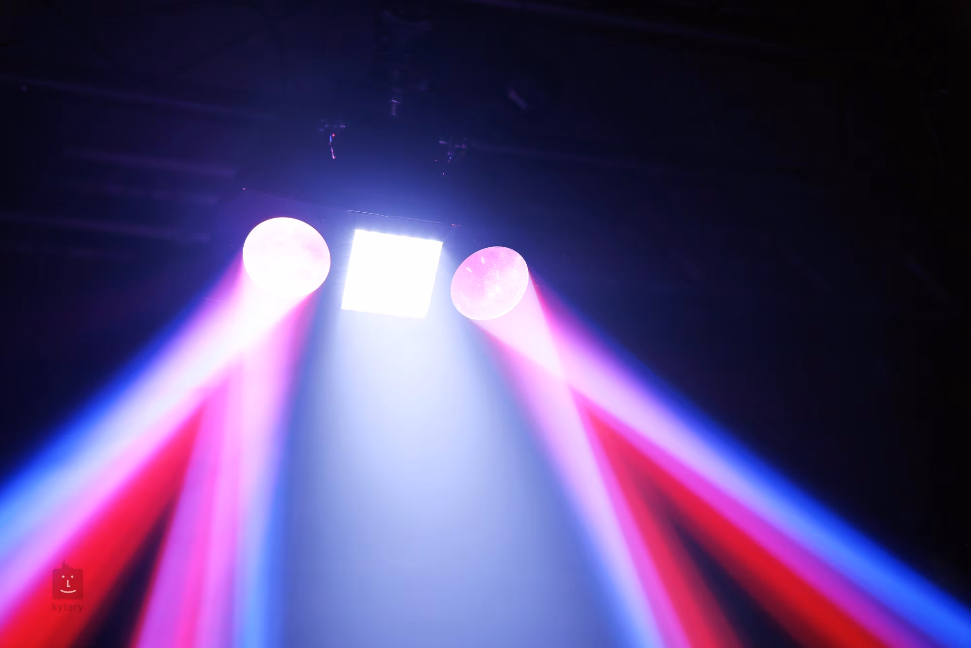 Zur Steuerung des Geräts wird kein externer Controller benötigt - dank der Plug & Play-Funktion wird das Gerät einfach an das Stromnetz angeschlossen und eines der automatischen Programme gestartet. Es gibt eine Reihe von voreingestellten Lichtshows, einen Automatikmodus mit einstellbarer Laufgeschwindigkeit und einen Audiokontrollmodus mit einstellbarer Mikrofonempfindlichkeit. Eine Metallhalterung zur Befestigung an einer Trägerstruktur ist im Lieferumfang enthalten. Das Gesamtgewicht des Geräts beträgt 2,1 kg.