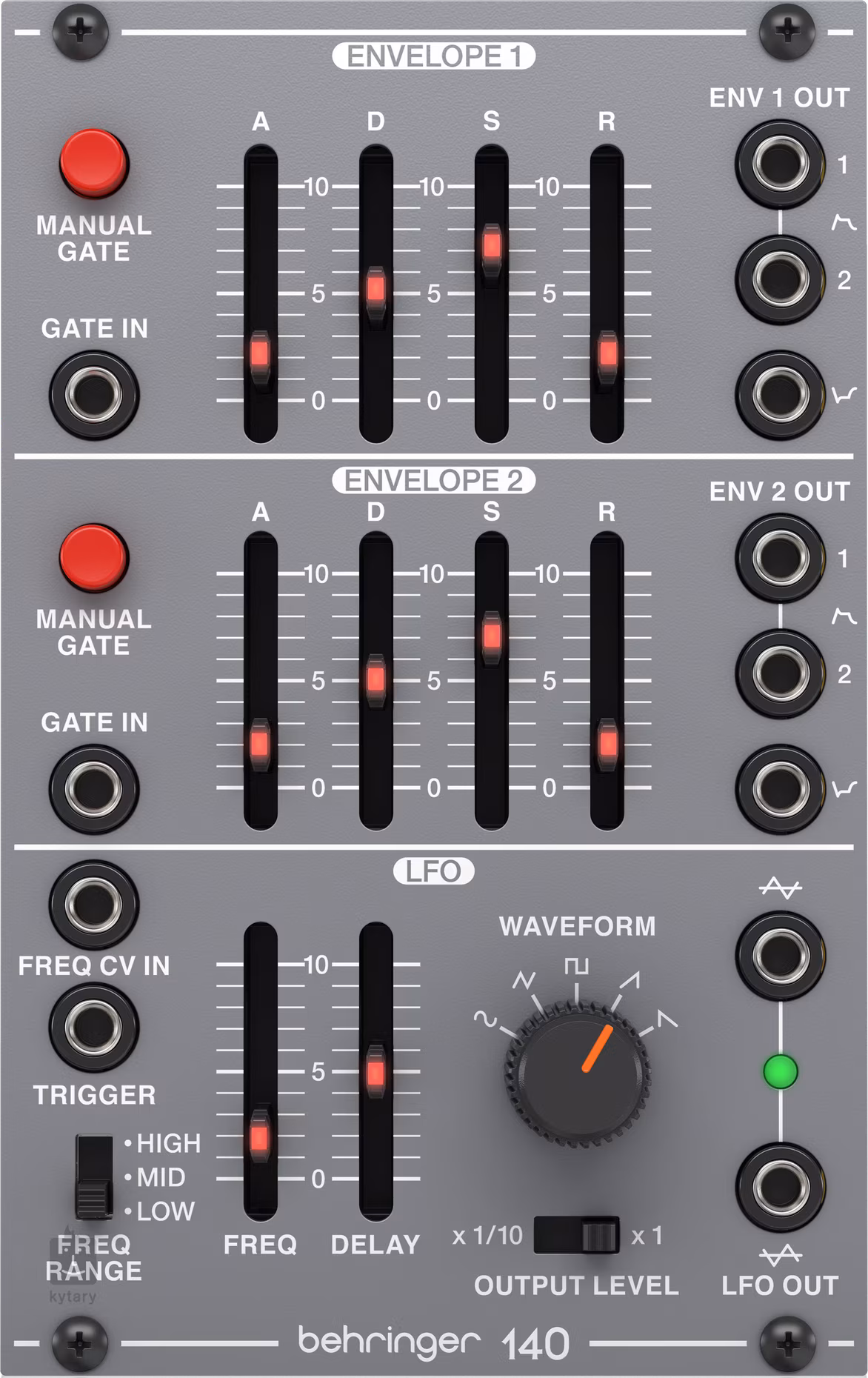 Egal, ob Sie ein Anfänger in der modularen Synthese oder ein erfahrener Benutzer sind, das Behringer 140 DUAL ENVELOPE/LFO Modul ist ein großartiges Werkzeug, um erstaunliche Musik zu kreieren.