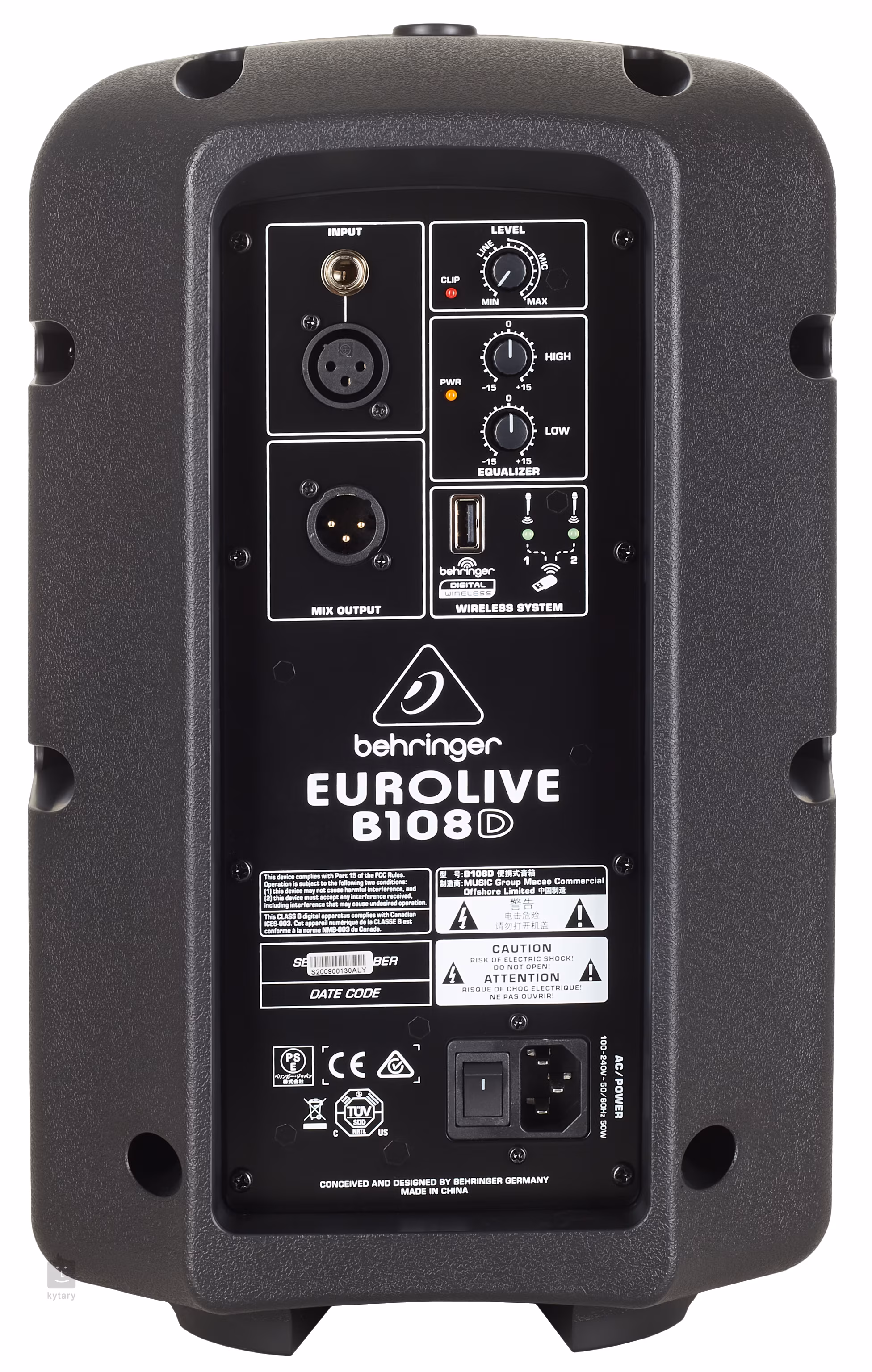 Im Inneren des robusten B108D befinden sich 8"-Tieftöner und 1"-Hochtöner, die zusammen mit einem Class-D-Bi-Amp-Verstärker eine maximale Ausgangsleistung von bis zu 300 W liefern. Das Hauptpanel bietet einen Zwei-Band-Equalizer, einen Lautstärkeregler und einen Eingang für Behringer Wireless-Systeme. Außerdem gibt es XLR- und Line-Eingänge für ein Mikrofon oder ein Musikinstrument sowie einen XLR-Ausgang zum Anschluss an ein anderes PA-System. Sie können den Lautsprecher auf den Boden stellen oder auf einen Lautsprecherständer montieren.
