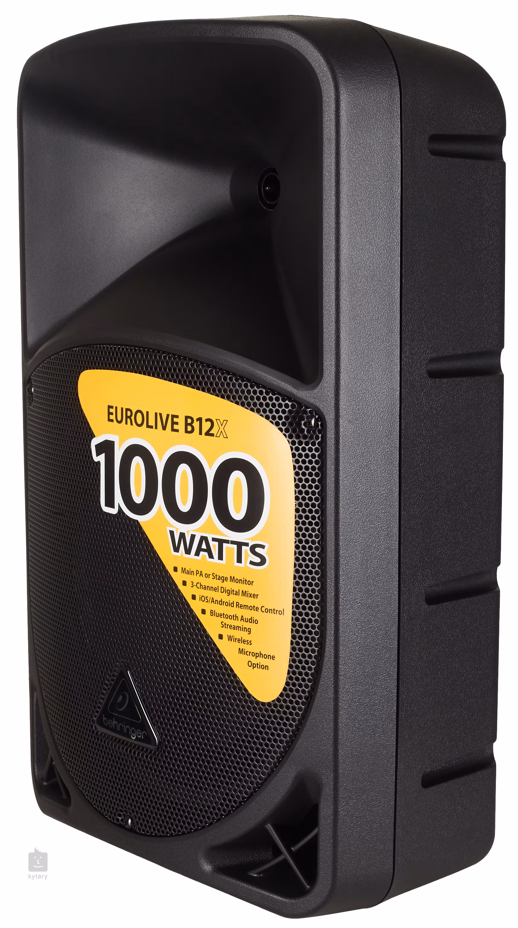 Aktiver Zwei-Wege-Lautsprecher mit Bluetooth-Technologie, geeignet für die Beschallung größerer Indoor- und Outdoor-Konzerte, Firmenfeiern oder Gartenpartys. Ihnen steht ein leistungsstarkes System mit intuitiver Bedienung und flexibler Konnektivität zur Verfügung. Im Inneren der robusten Konstruktion des B12X befinden sich ein 12-Zoll-Tieftöner und ein 1-Zoll-Hochtöner, die Ihnen zusammen mit einem Bi-Amp-Verstärker der Klasse D eine maximale Leistung von bis zu 1000 W bieten. Das Hauptpanel verfügt über ein intelligentes System von Klark Tektik mit übersichtlichem LCD-Display, drahtloser Bluetooth-Technologie und einem Eingang für Behringer Wireless. Die Einstellung des Eingangssignals erfolgt völlig drahtlos über eine App auf Ihrem Smartphone oder Tablet, wo Ihnen ein dreikanaliges Mischpult mit Lautstärkereglern, einem dreifachen EQ und vielen weiteren Funktionen zur Verfügung steht. Außerdem finden Sie hier zwei kombinierte Eingänge für Mikrofon oder Musikinstrument und einen XLR-Ausgang zum Anschluss an ein weiteres PA-System. Der Lautsprecher kann auf den Boden gestellt oder auf einem Lautsprecherständer befestigt werden, ein Paar robuste Griffe sorgt dann für einen bequemen und sicheren Transport zwischen den Produktionen.