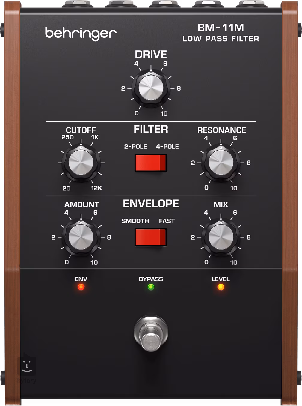Der Effektpedal Behringer BM-11 Low Pass Filter ist eine originalgetreue Nachbildung des legendären Moog MF-101, der 1998 erstmals einen Low-Pass-Filter auf die Pedal-Bühne brachte und damit dessen Beliebtheit unter Gitarristen steigerte. Wenn Sie Fans von Gary Numan, Stevie Wonder, Pink Floyd, Rush oder den Red Hot Chili Peppers sind, sollten Sie wissen, dass einige Hits dieser Interpreten ohne den Low-Pass-Filter niemals entstanden wären. Dieses einzigartige Gerät hat die Aufgabe, nur tiefe Frequenzen durchzulassen und hohe Frequenzen zu filtern, wodurch ein einzigartiger Klang entsteht, der seit seiner Einführung vor allem bei Synthesizer-Spielern beliebt ist, aber auch den Klang von Gitarren, Bassgitarren, Schlagzeug oder praktisch allem anderen, was Sie damit bearbeiten, hervorragend belebt. Das Original Moogerfooger MF-101 ist wahrscheinlich nicht mehr erhältlich, aber diese Nachbildung von Behringer bietet Ihnen seinen authentischen Klang und sein authentisches Spielgefühl. Entdecken Sie neue Klangdimensionen mit dem Behringer BM-11 Low Pass Filter!
