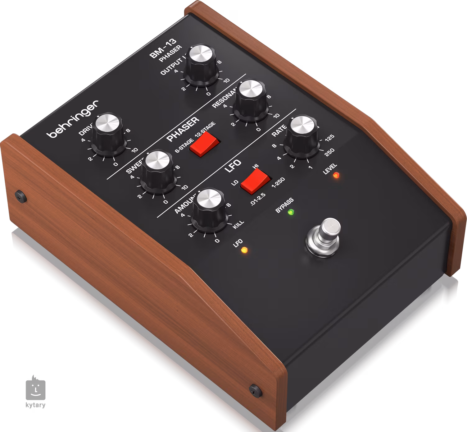 Das Behringer BM-13 Phaser-Effektgerät ist eine originalgetreue Nachbildung des legendären Moog MF-103 Zwölfstufen-Phasers, der mit insgesamt zwölf Phasenverschiebungsstufen einen sehr komplexen, rockenden und wirbelnden Sound erzeugte. Mit Hilfe mehrerer Regler konnte der Spieler das gefilterte Frequenzband(Sweep) und die Amplitude(Resonance) einstellen sowie mit den Parametern des Tiefpassfilters(LFO) über die Potentiometer Rate und Amount herumspielen. Das Ergebnis war ein ganzes Spektrum an klanglichen Möglichkeiten, die dem Spieler völlig neue Klangtexturen eröffneten. Den originalen Moog-Phaser gibt es wahrscheinlich nicht mehr, aber dieser Behringer-Nachbau kommt seinem Sound so nahe wie möglich. Entdecke neue klangliche Dimensionen mit dem Behringer BM-13 Phaser!