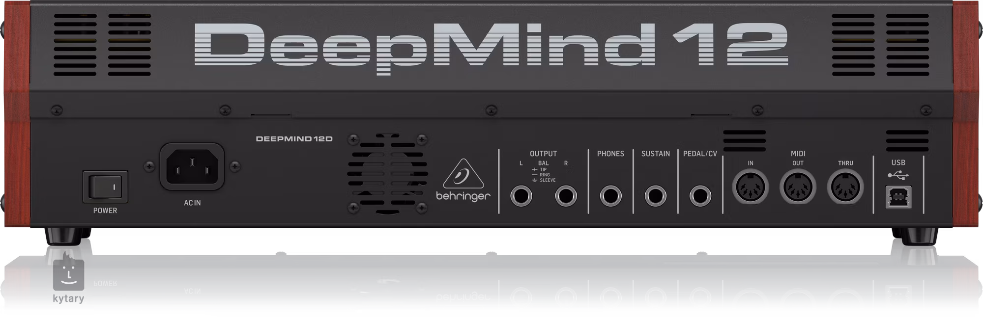 Der zweite Teil des DeepMind 12D ist ein flexibles Anschlussfeld für unzählige Kombinations- und Verkabelungsmöglichkeiten. Alle Anschlüsse auf der Rückseite sind klar beschrieben. Sie finden dort MIDI-Anschlüsse, einen Kopfhörerausgang, einen Stereo-Line-Ausgang, ein Paar Expression- und Sustain-Anschlüsse sowie einen USB-Anschluss für die Verbindung mit einem PC. Rack-Halterungen sind im Lieferumfang enthalten.