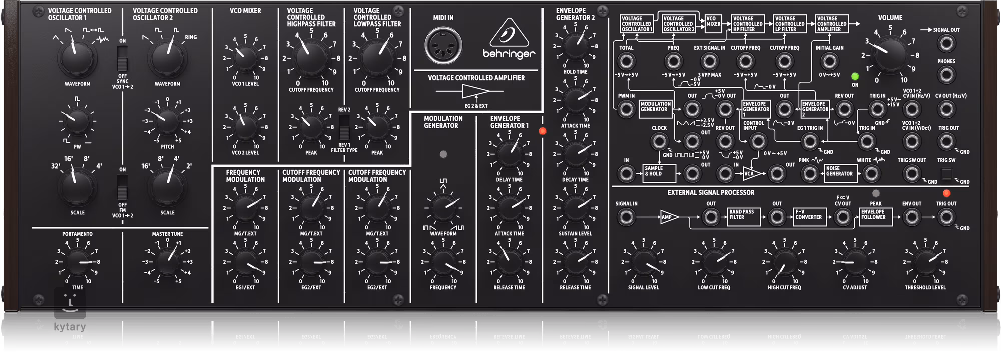 Das Standard-Signal-Routing erfordert kein einziges Patchkabel. Die semi-modulare Architektur ermöglicht es Ihnen, die inspirierten Sounds von Progressive Rock, Wave, EDM und Synth-Pop der 80er und 90er Jahre zu genießen, die Rock'n'Roll-Geschichte geschrieben haben!